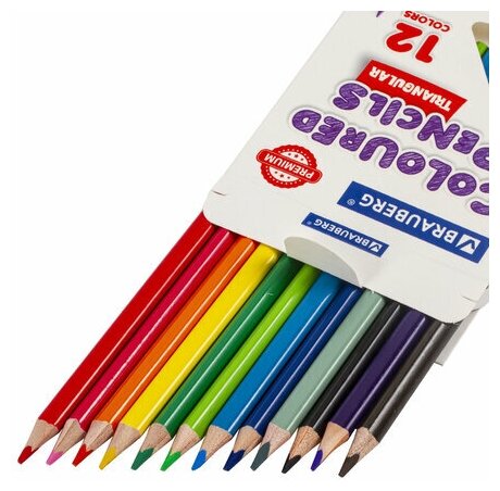 Карандаши цветные BRAUBERG PREMIUM, 12 цветов, трехгранные, грифель мягкий 3,3 мм, 181651 (арт. 181651)