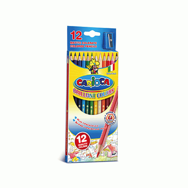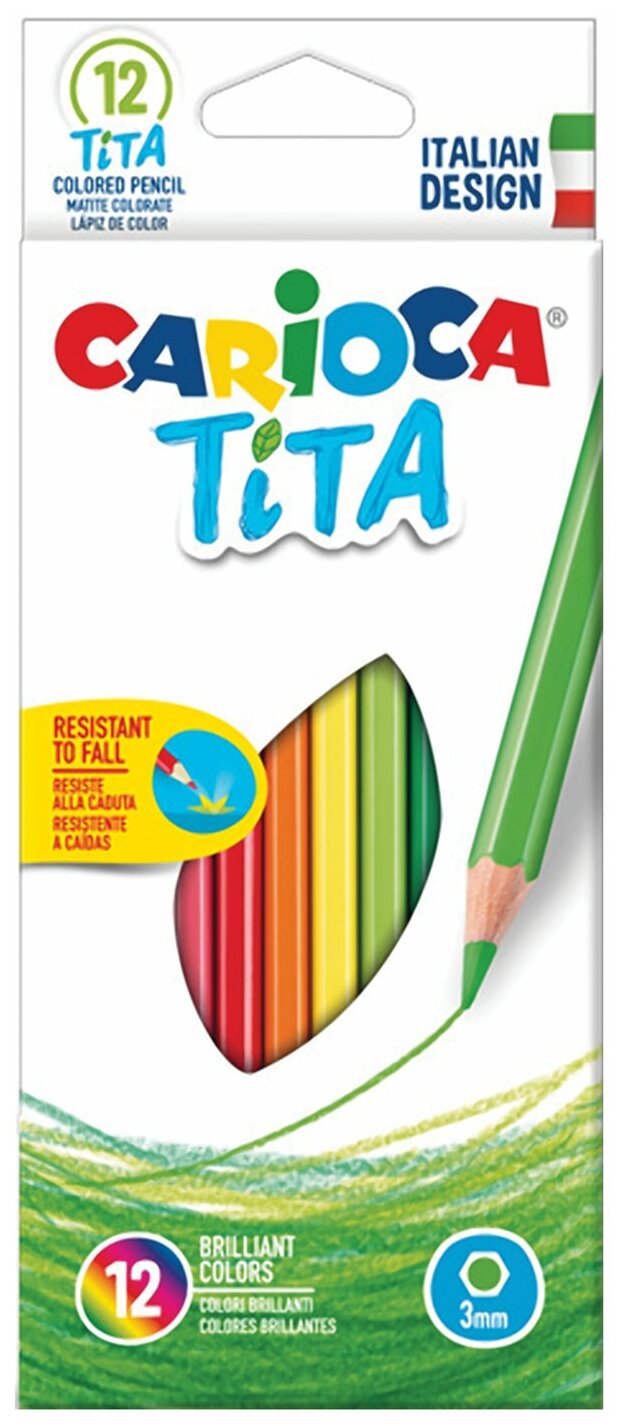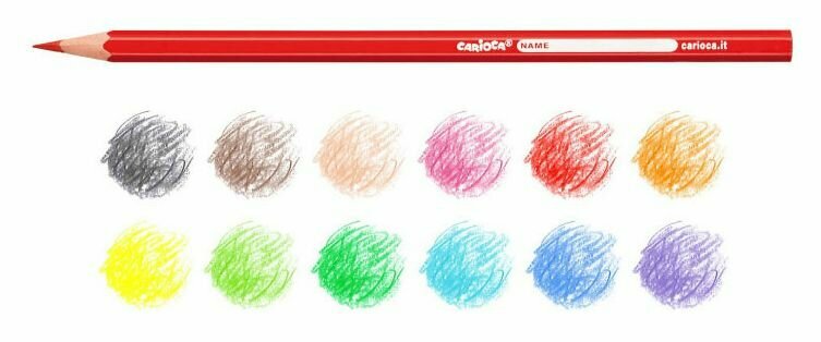Карандаши 12 цветов Carioca, шестигранные, яркий ударопрочный грифель 3,0 мм, картонная упаковка