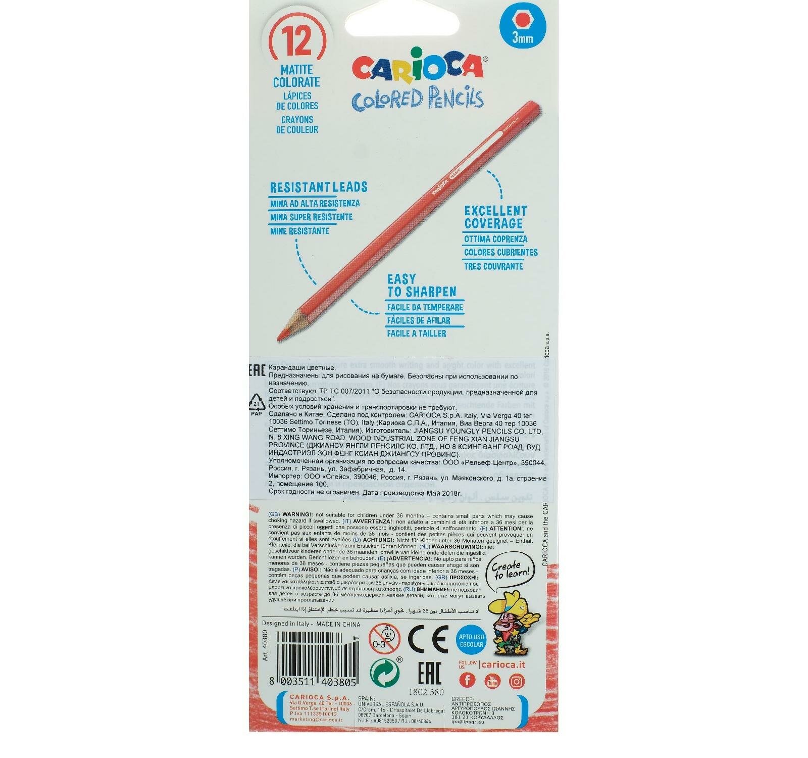 Ниже Вы можете прочитать отзывы на Карандаши цветные CARIOCA (Италия), 12 цветов, шестигранные, грифель 3 мм, натуральное дерево, 40380, ознакомится с подробными характеристиками, посмотреть интересные обзоры и фотографии на Карандаши цветные CARIOCA (Италия), 12 цветов, шестигранные, грифель 3 мм, натуральное дерево, 40380.