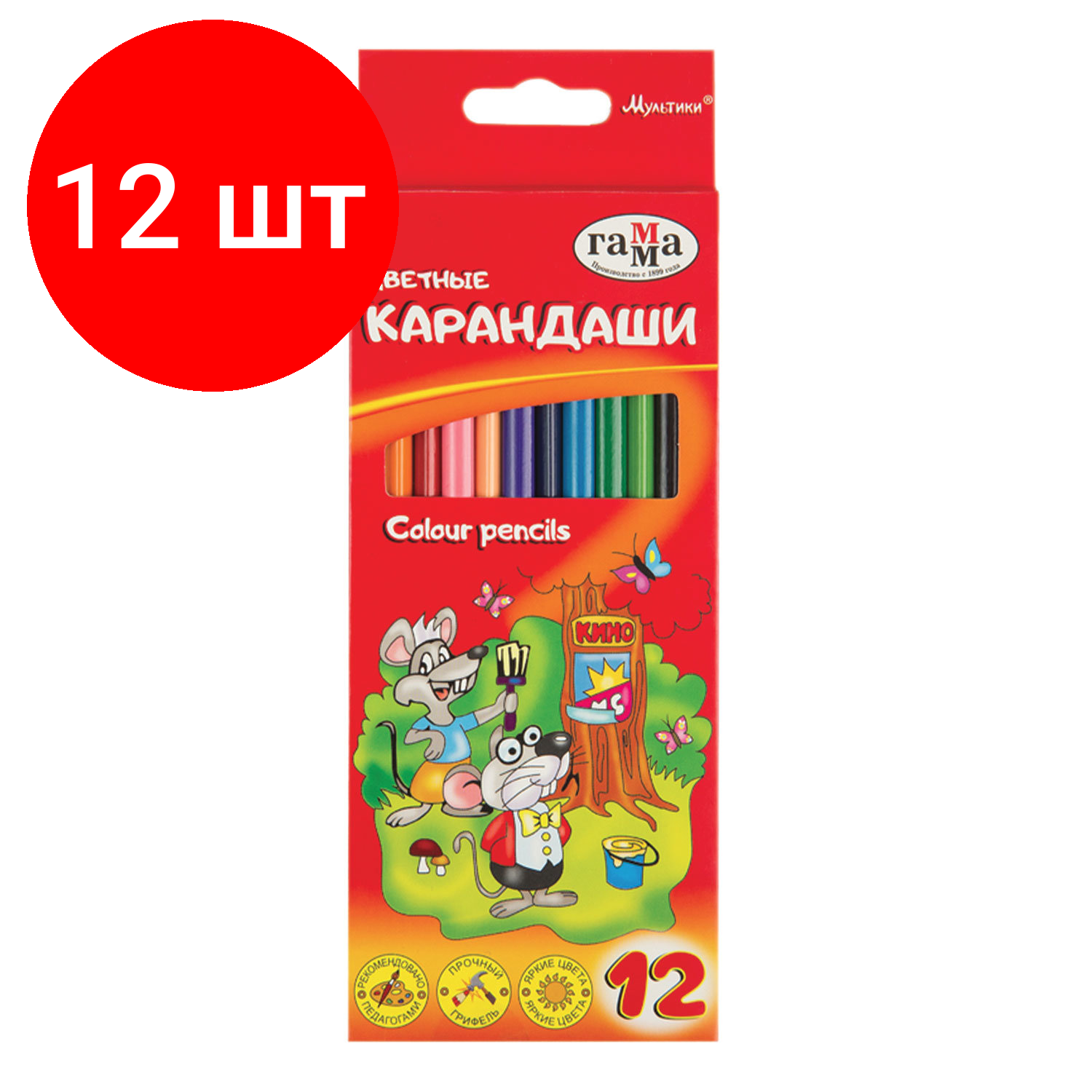 Купить Карандаши цветные гамма "Мультики", 12 цв., заточенные, трехгранные, карт. упак., 05091807, 050918_07, 1 шт