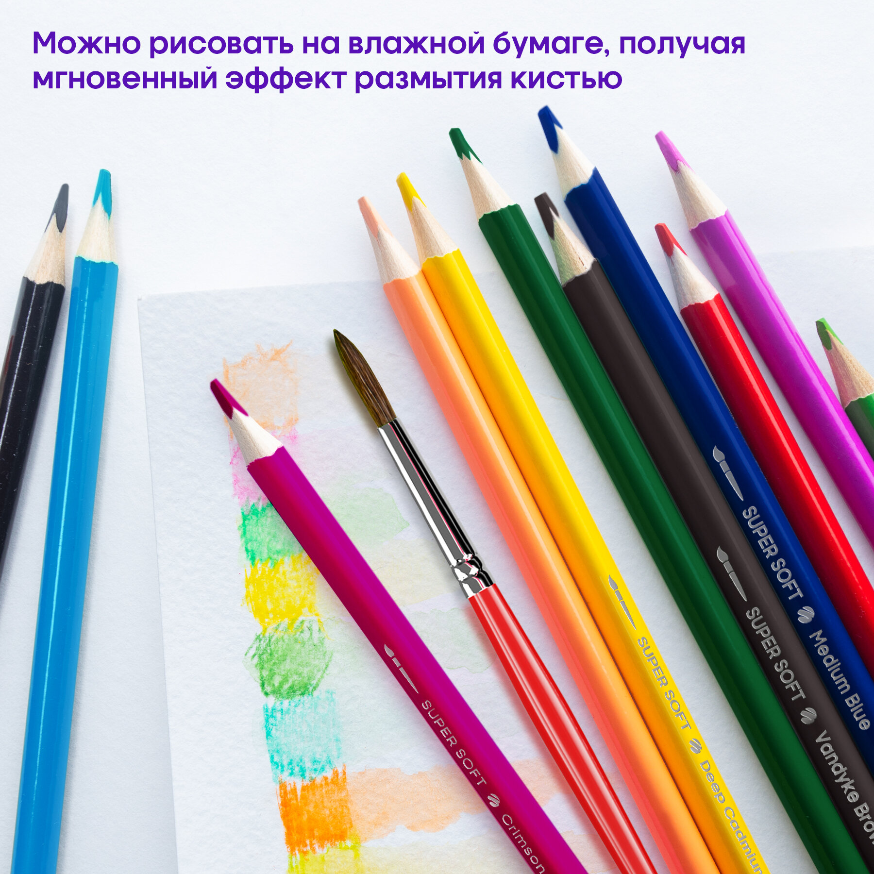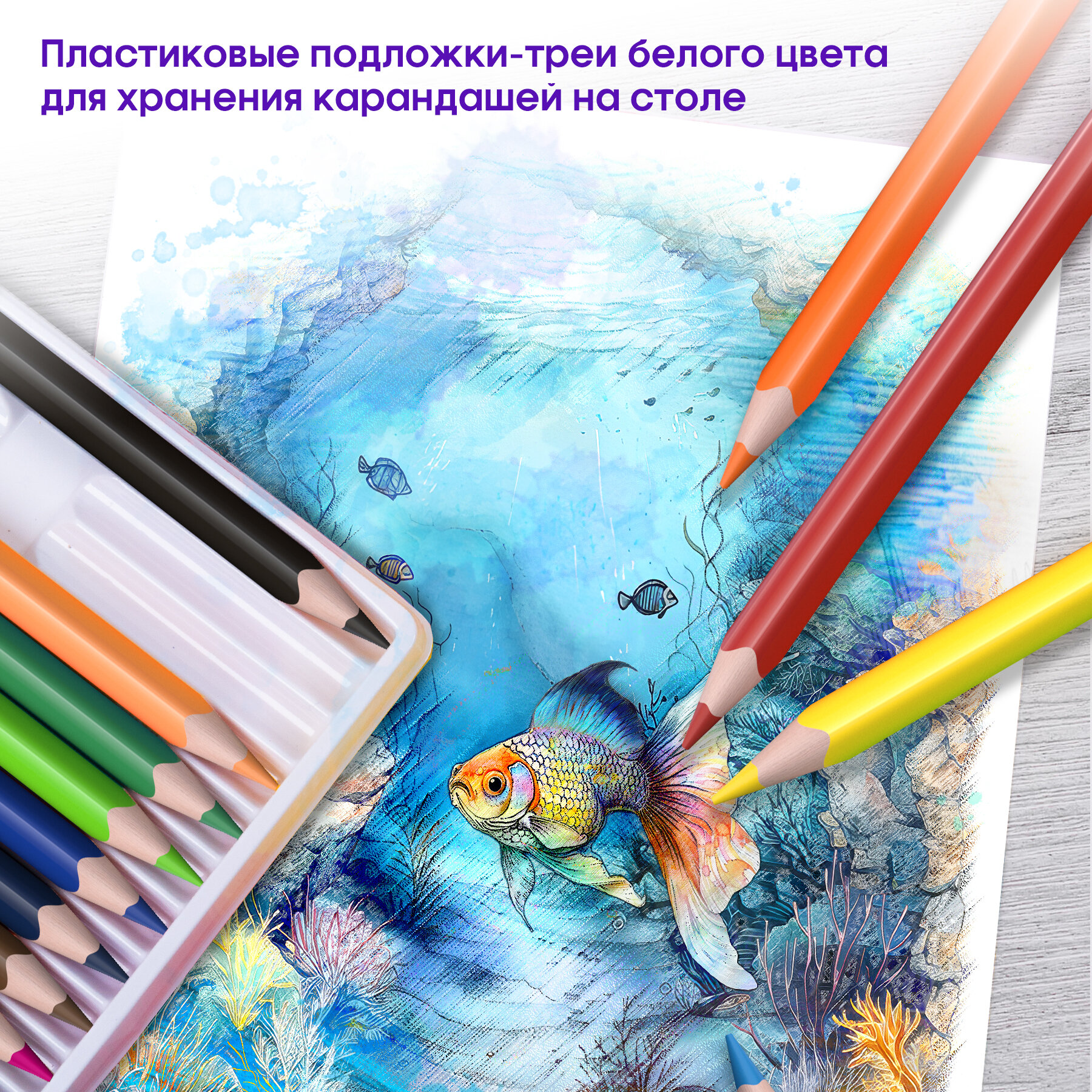 Цветные карандаши для школы акварельные 72 цвета, трехгранные / Набор цветных карандашей для рисования школьный Berlingo "SuperSoft. Рыбки"