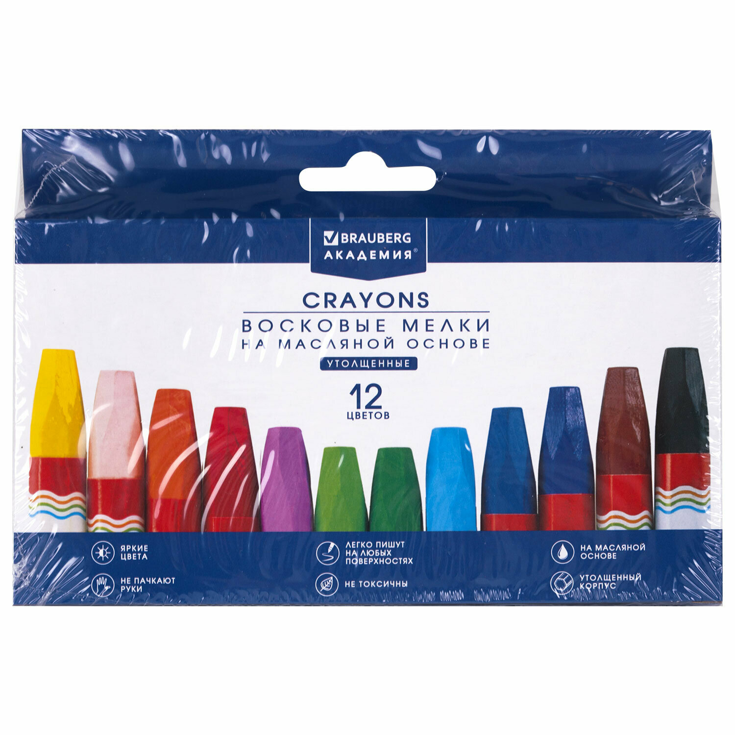 Купить Восковые мелки для рисования утолщенные Brauberg Академия, Набор 12 цветов, на масляной основе, яркие цвета, 227295