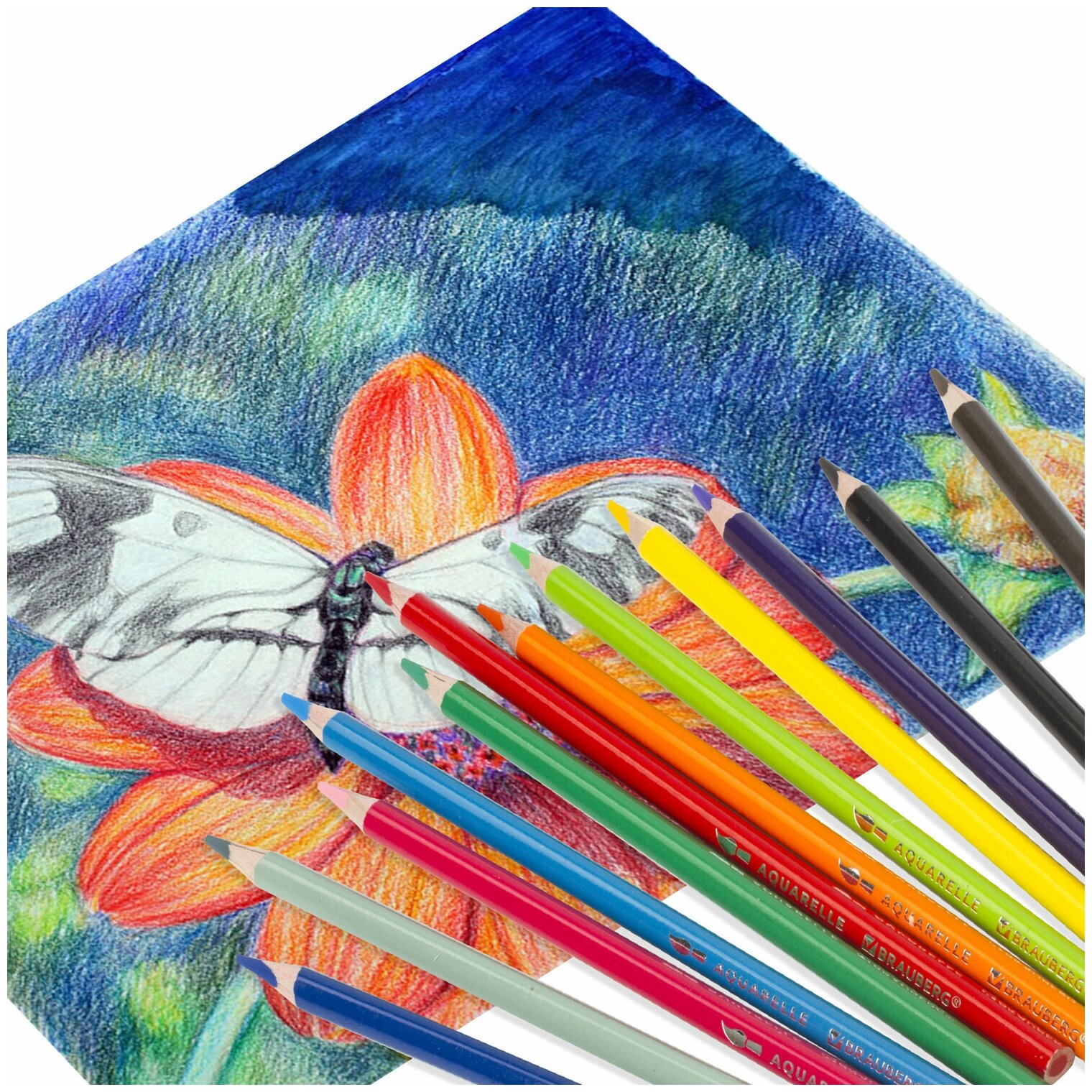 Карандаши цветные Brauberg акварельные, Premium aquarelle, 12 цветов, грифель мягкий, 4 мм (181671)
