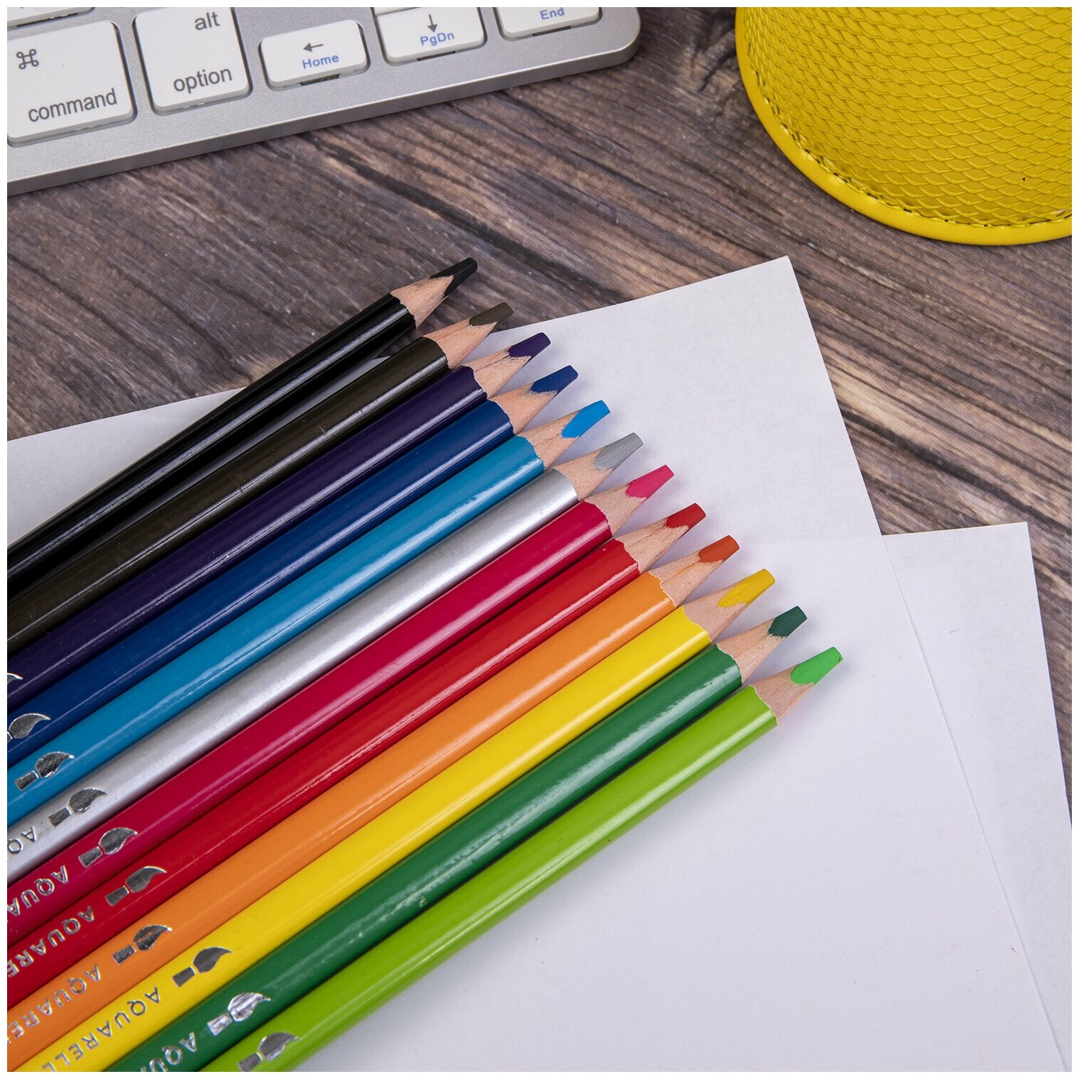 Комплект 13 шт, Карандаши цветные акварельные BRAUBERG PREMIUM AQUARELLE, 12 цветов, грифель мягкий 4 мм, 181671