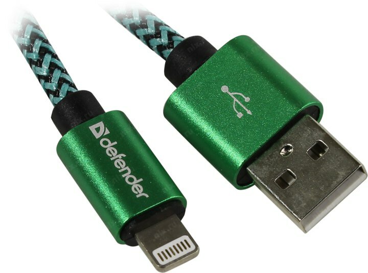 Кабель Lightning 1м Defender ACH01-03T PRO круглый зеленый 87810