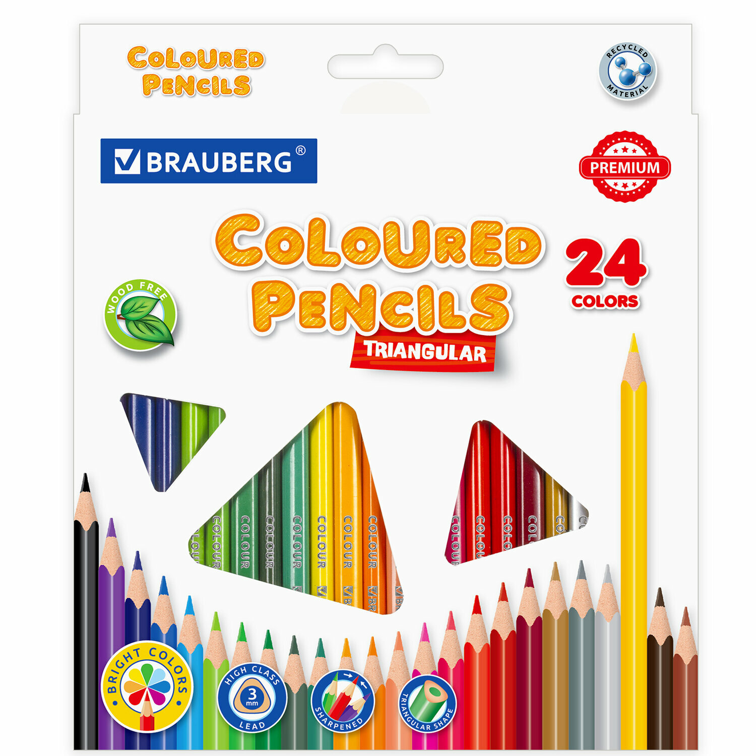 Купить Карандаши пластиковые цветные для рисования Brauberg Premium, 24 цвета, трехгранные, грифель мягкий 3 мм, 181663