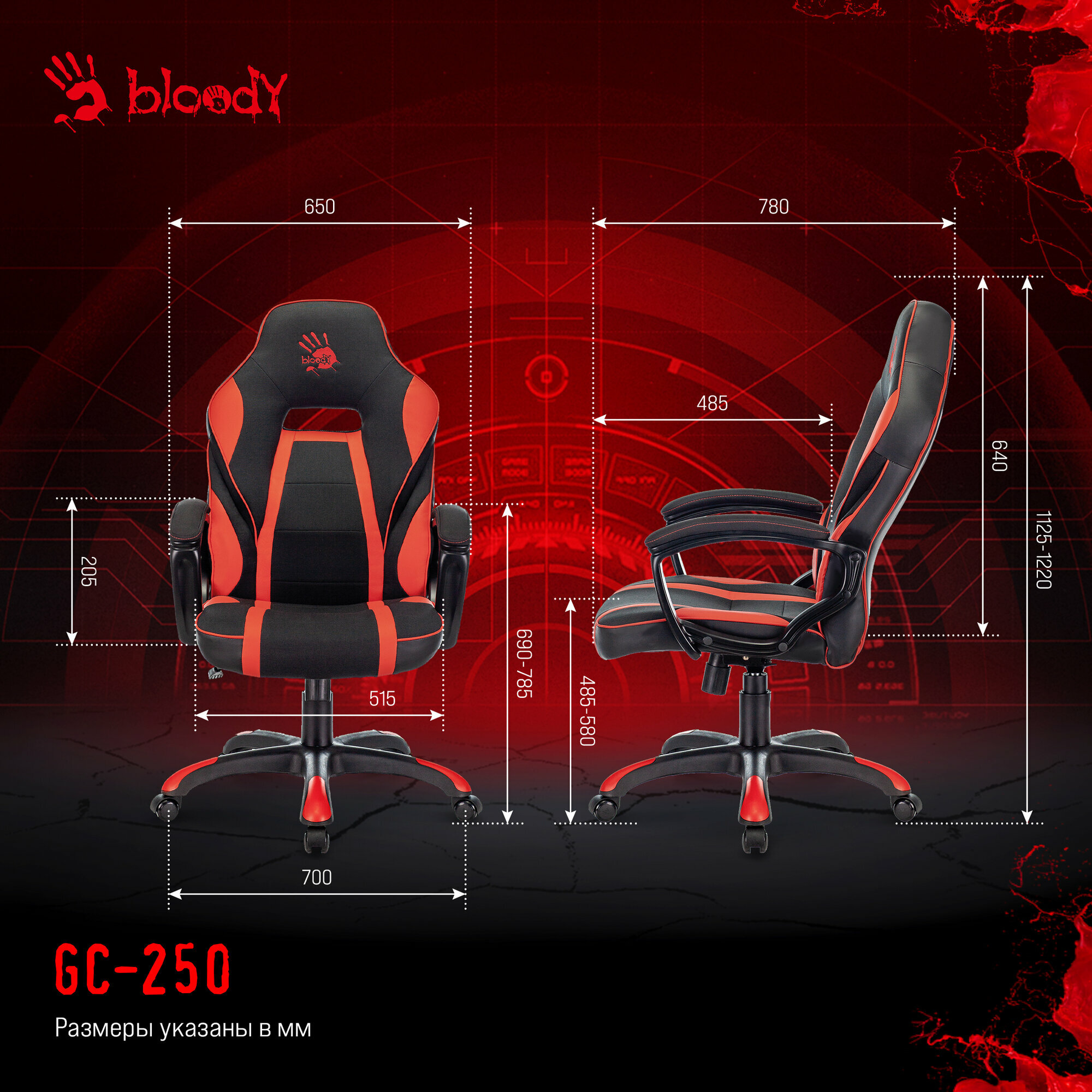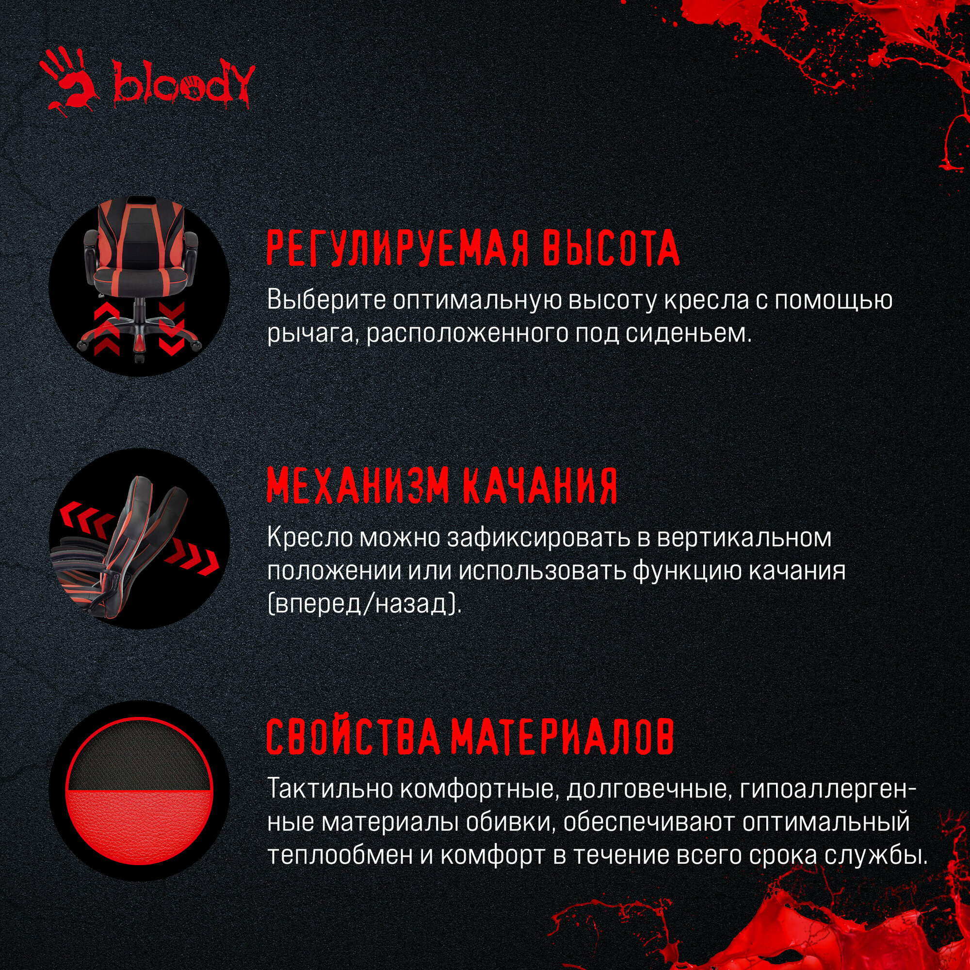 Игровое кресло A4TECH Bloody GC-250 (черный/красный, искусст.кожа/ткань)