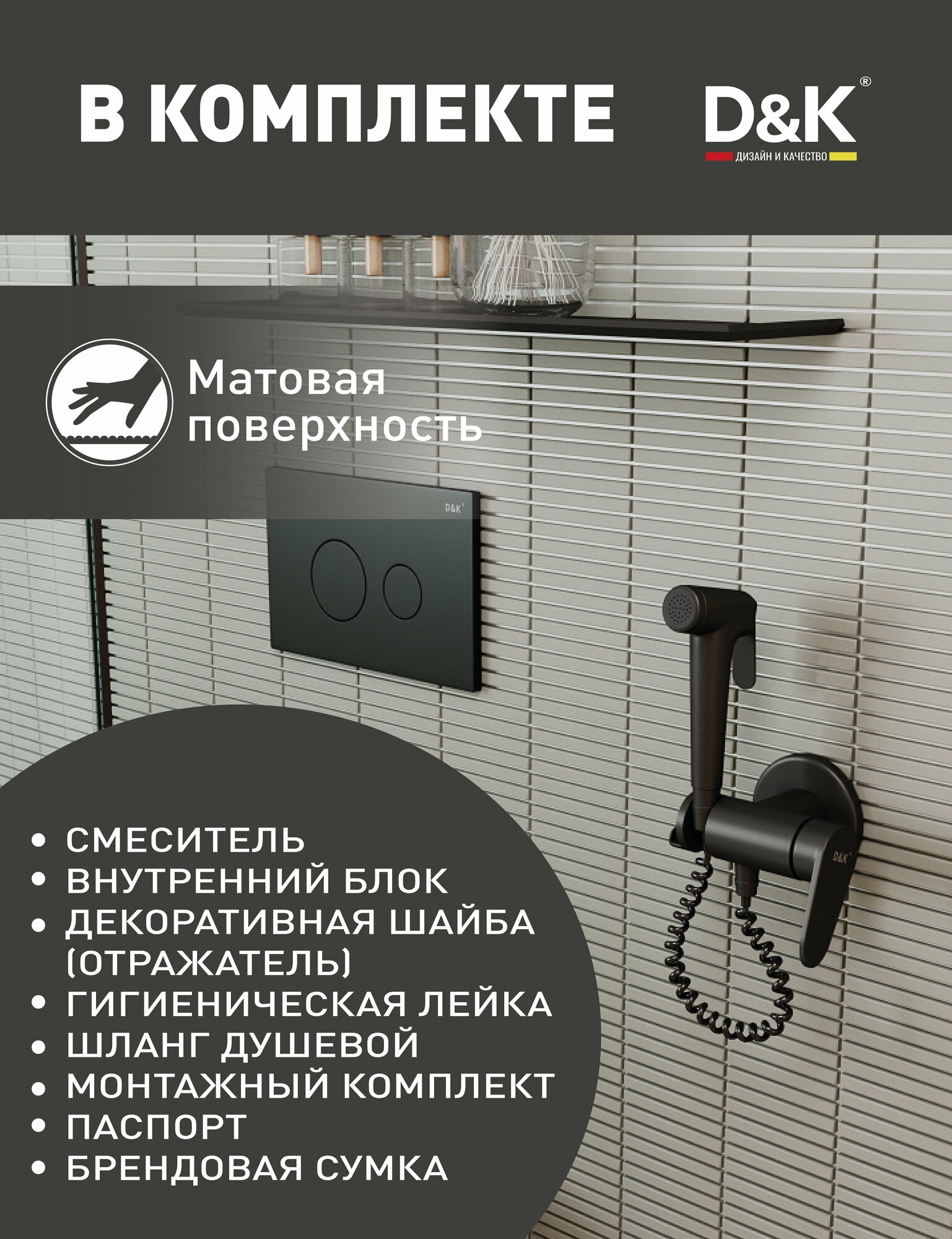 Купить Смеситель с гигиеническим душем встраиваемый D&K Rhein Marx, черный матовый (DA1394585)
