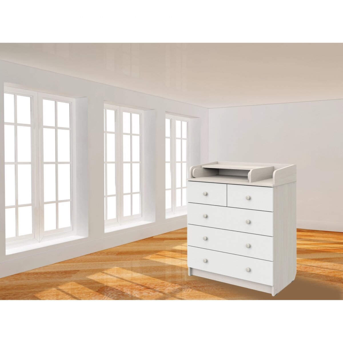 Комод детский с пеленальным столиком Сириус-2 805 ЛДСП, ясень шимо светлый/белый, 5 ящиков
