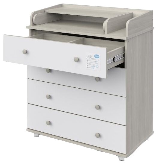 Комод пеленальный Атон Орион 804 (Oliver) ЛДСП с шариковыми направляющими, шимо светлый-белый