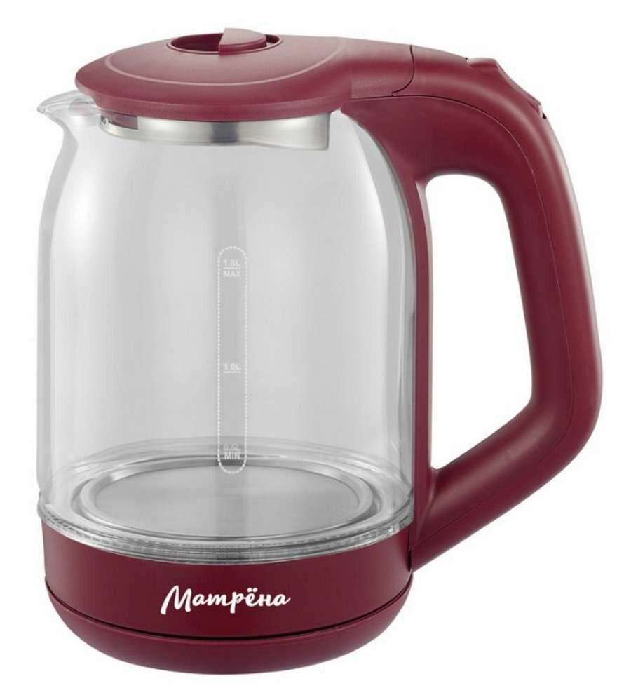 Чайник электрический Матрена MA-006 1,8 л, стекло, пластик, вишневый