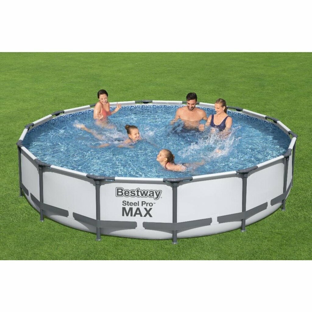 Бассейн каркасный круглый с фильтр-насосом Bestway 56420 Steel Pro Max 366х122 см 10250л / Бассейн бествей семейный для дачи с жестким бортом
