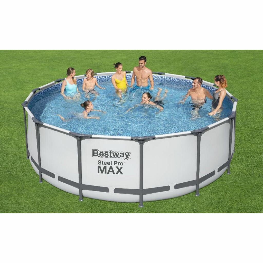 Бассейн каркасный круглый с фильтр-насосом Bestway 56420 Steel Pro Max 366х122 см 10250л / Бассейн бествей семейный для дачи с жестким бортом