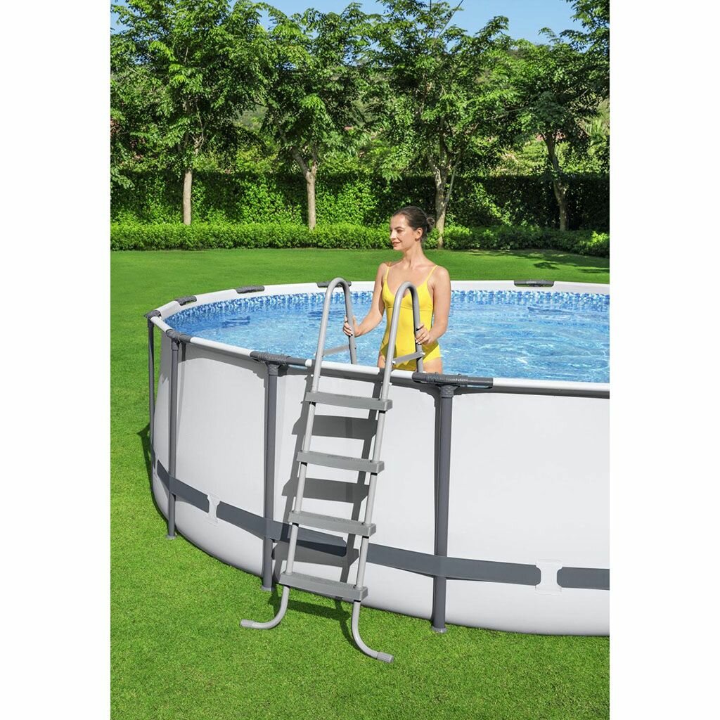 Каркасный бассейн Bestway 56420, 366х122 см, фильтр-насос, лестница, тент. Цвет: серый