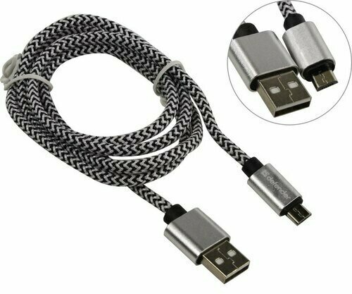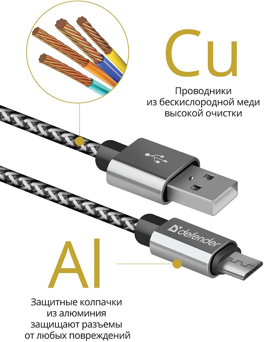 Кабель USB2.0 Am-microB Defender USB08-03T Pro AM-MicroBM, серебро, в оплетке, медный проводник - 1 метр