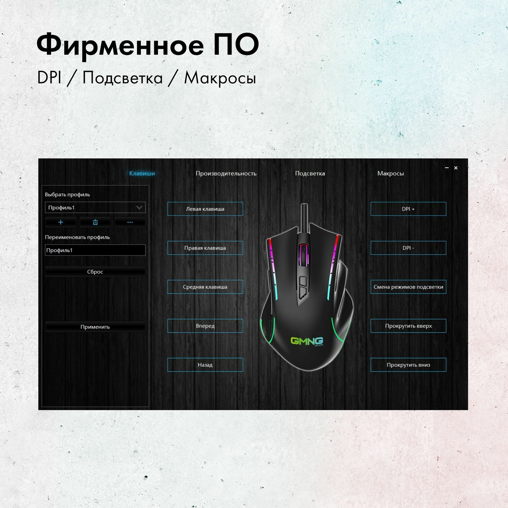 Идиотская смена режимов подсветки нажатием dpi. Хочешь другой цвет - меняешь скорость мыши. Бред. |