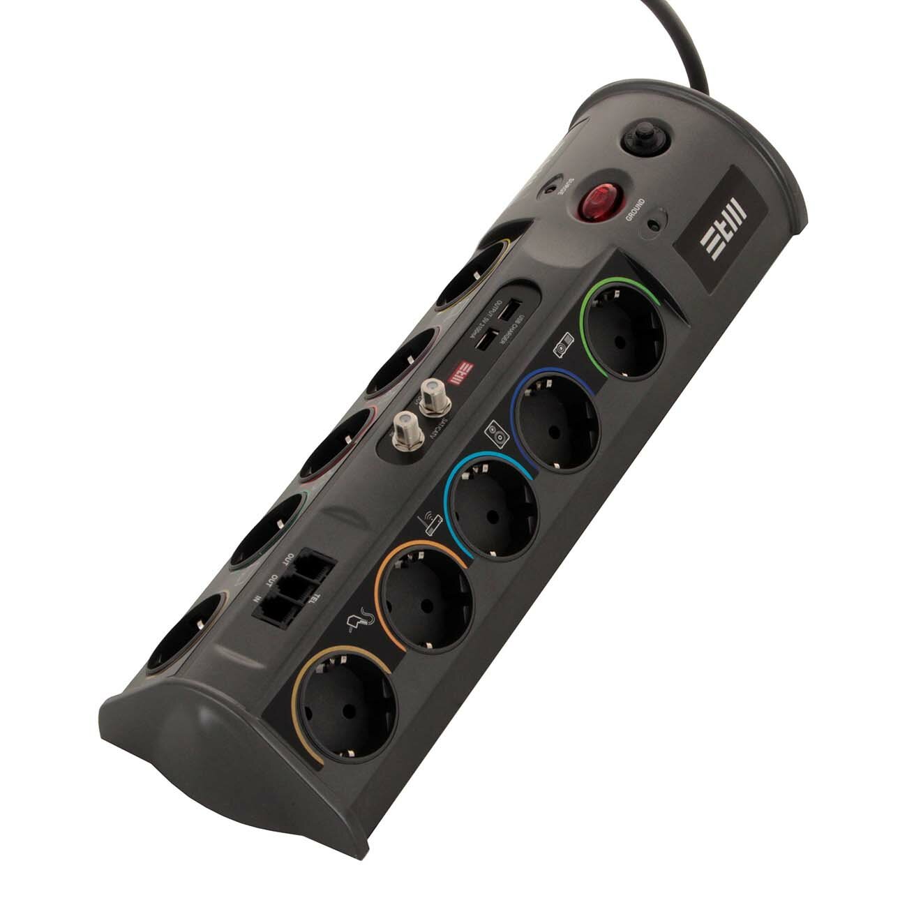 Сетевой фильтр на 10 розеток STM, 2 USB, защита от короткого замыкания, 3680 Вт. PS101-NTU
