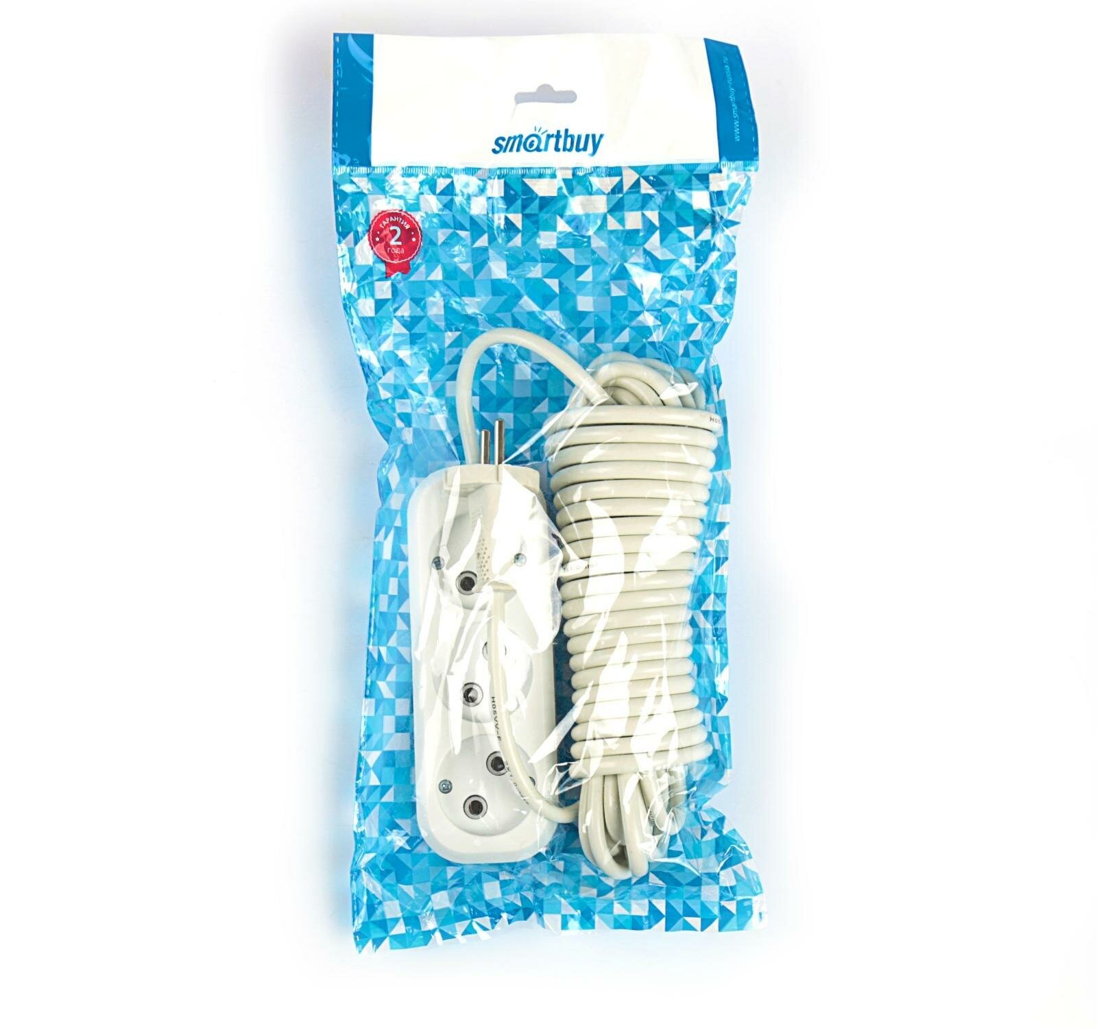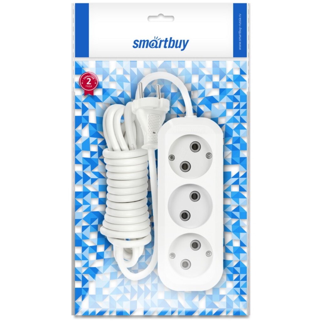 Удлинитель бытовой Smartbuy SBE-10-3-07-N, 3 розетки, 7 м, б/з, 10А / 2200 Вт, белый.