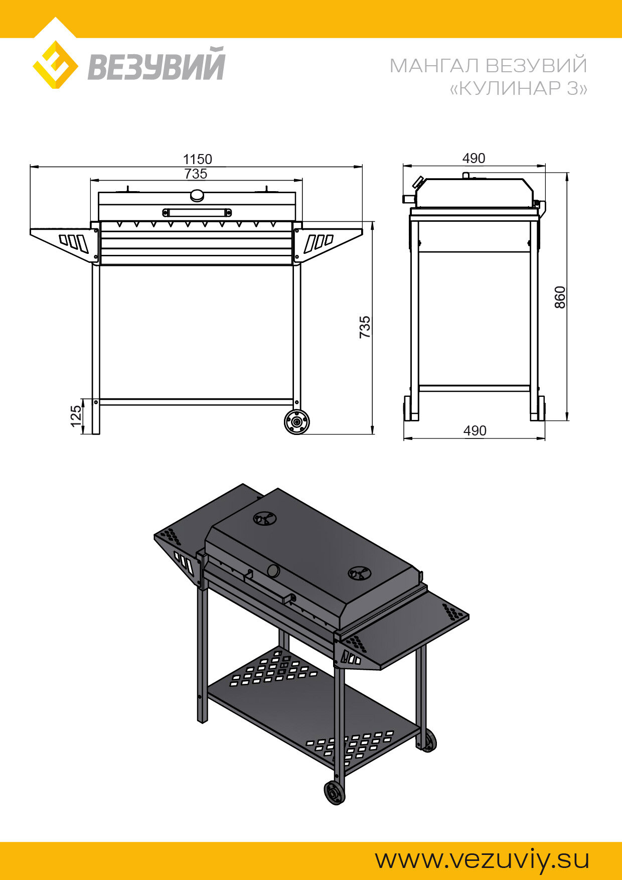 Мангал для дачи на колесах Везувий "Кулинар 3" интересное: