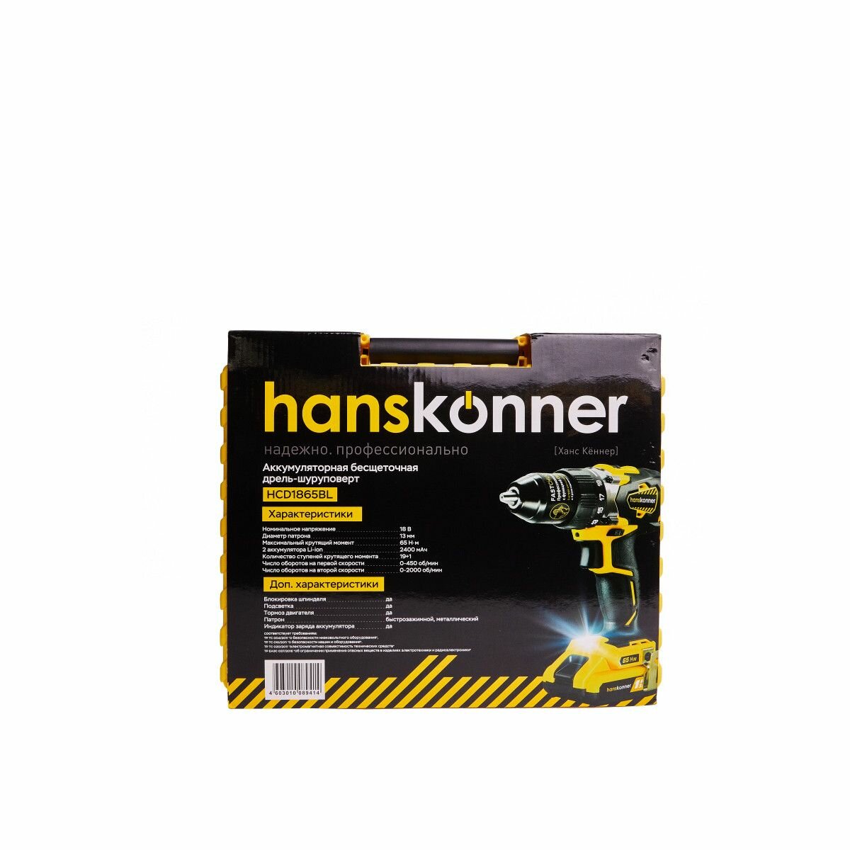 Купить Дрель-шуруповерт аккумуляторная бесщеточная Hanskonner HCD1865BL, 18 В Li 2x2.4 Ач