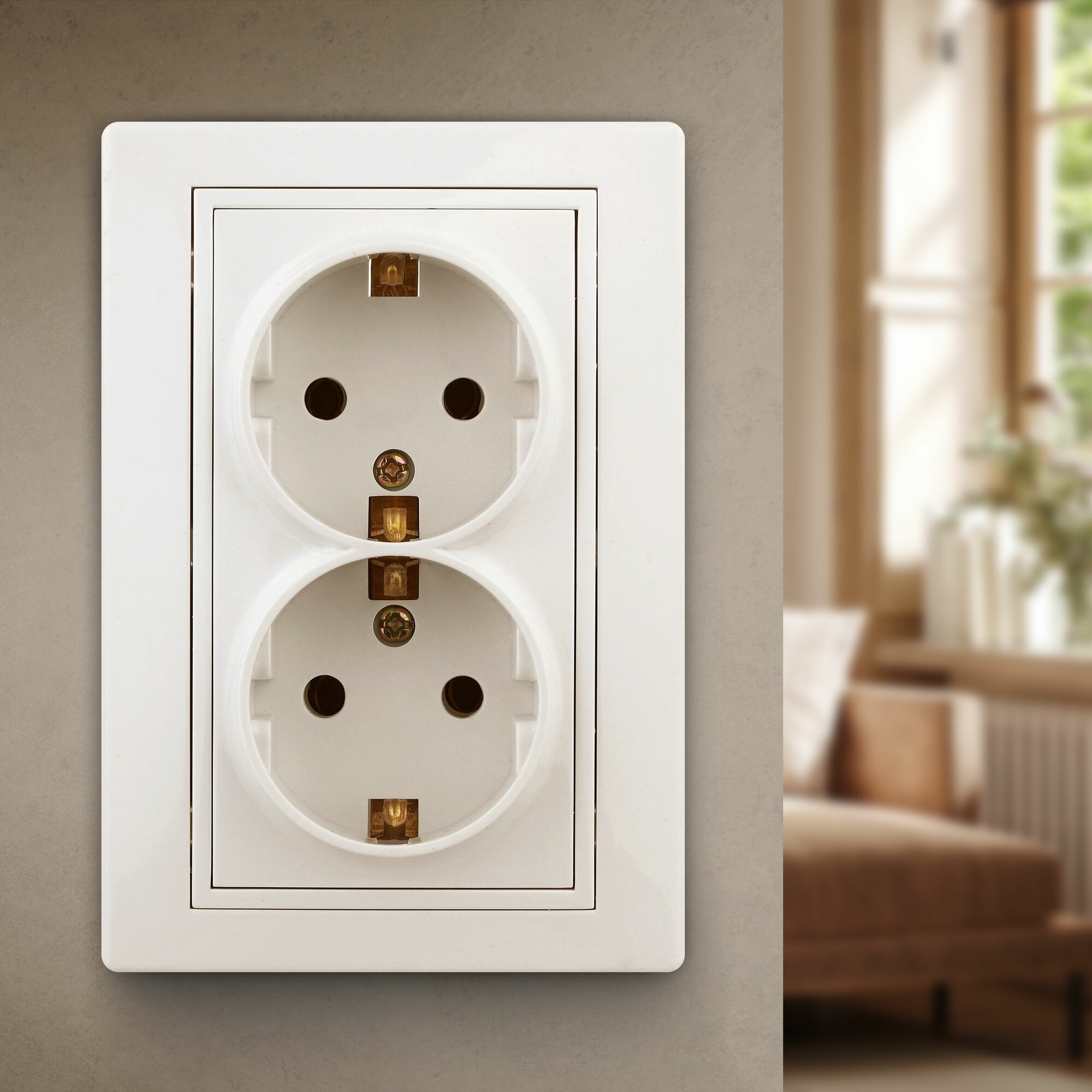 Розетка Intro Plano 1-205-01 с заземлением двойная 2X2P+E Schuko, 16А-250В, IP20, СУ, белый