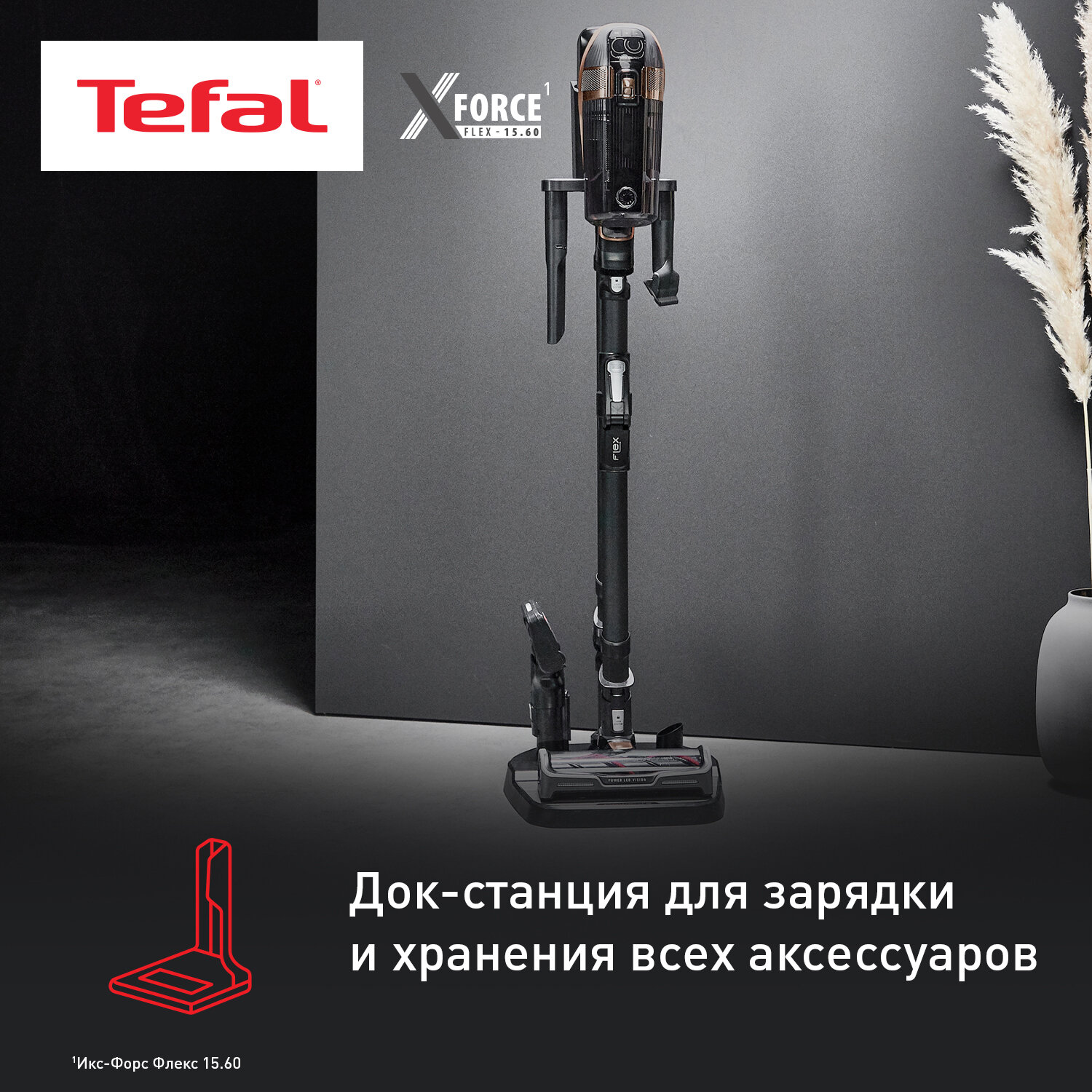 Вертикальный беспроводной пылесос Tefal X-Force Flex 14.60 Animal Care TY99A8WO с автоматической регулировкой мощности и 6 насадками, черный