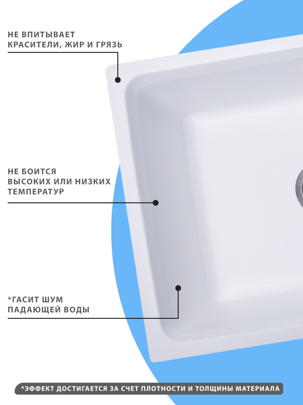 Мойка для кухни из искусственного камня прямоугольная с крылом (73,4x48,3), белая интересное: