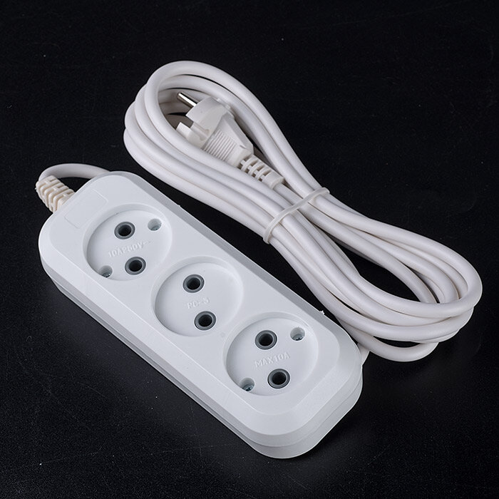 Удлинитель Jett 5м 155-203 РС-3 (провод ПВС 2х0.75) , 3 розетки, б/з, 10А / 2200 Вт белый