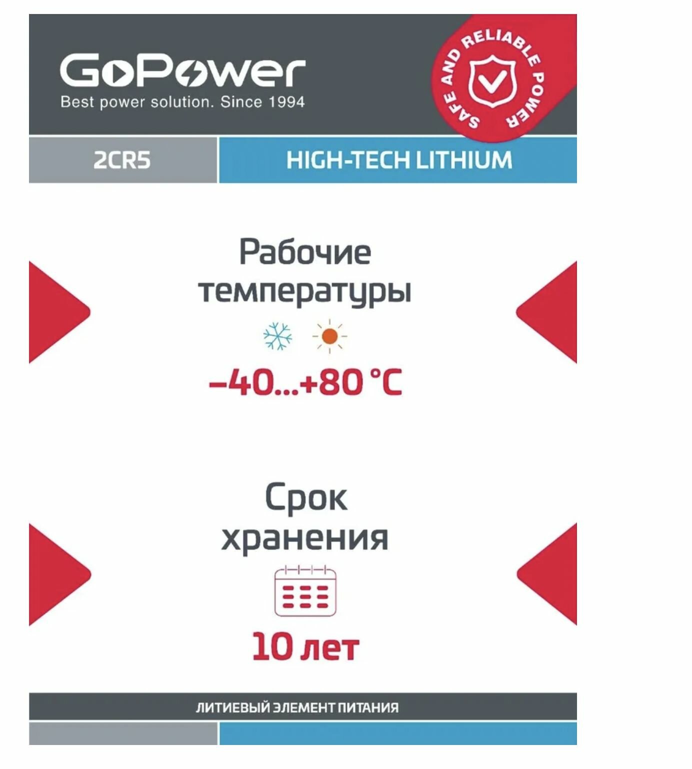 Батарейка GoPower Lithium, 2CR5, 6 В, 6203 (00-00023062) интересное: