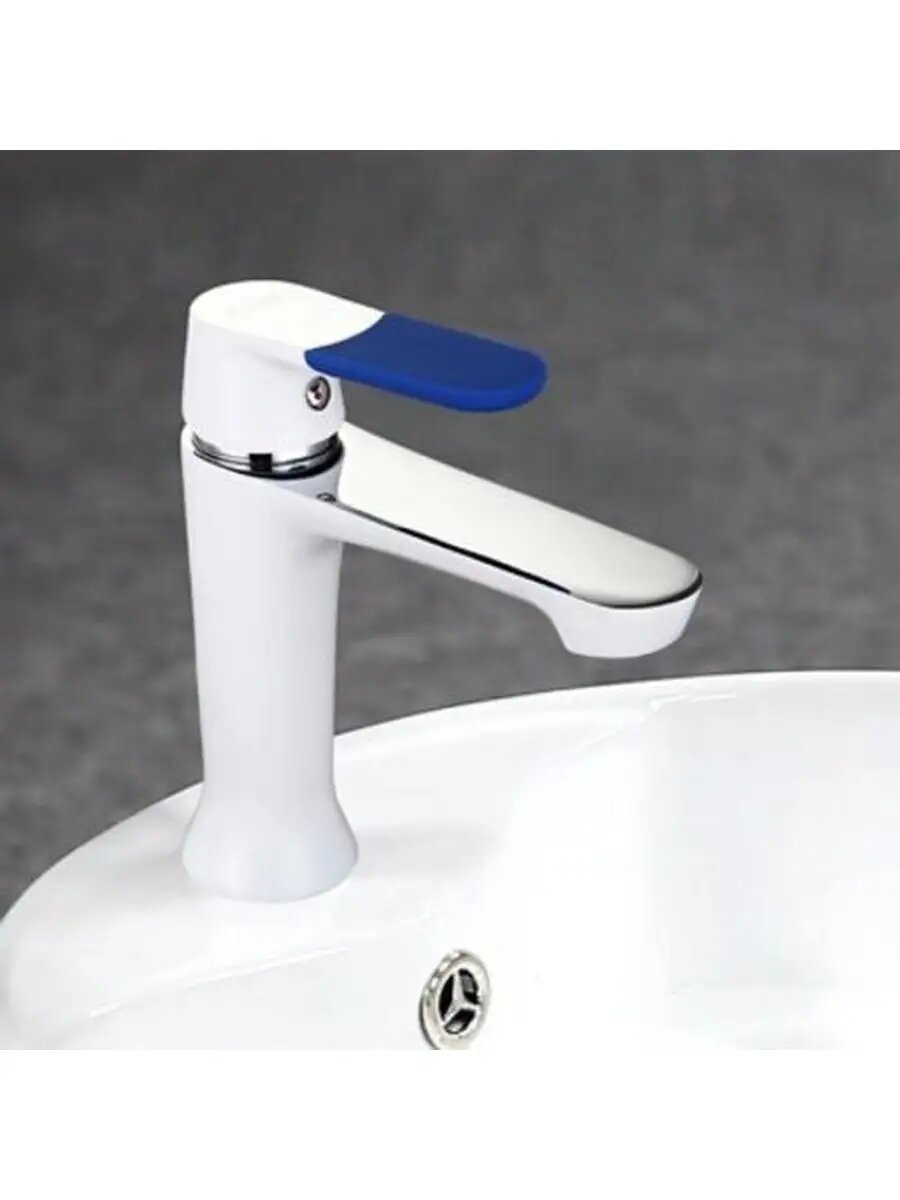 Смеситель для умывальника Frap F1034 с коротким изливом, белый/хром, цветные накладки на ручку