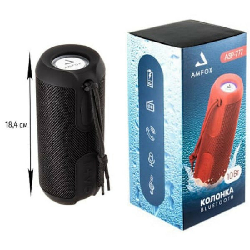 Портативная колонка AMFOX ASP-777, Bluetooth, 5Вт2, подсветка, влагозащита, черная