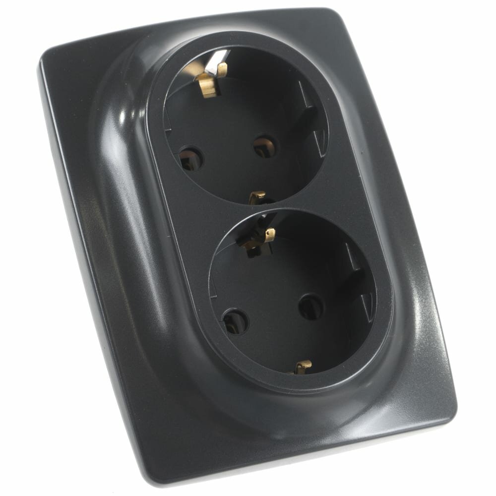 Розетка двойная ретро керамическая Арбат с заземлением черная, Interior Electric SCIE/W-03-2