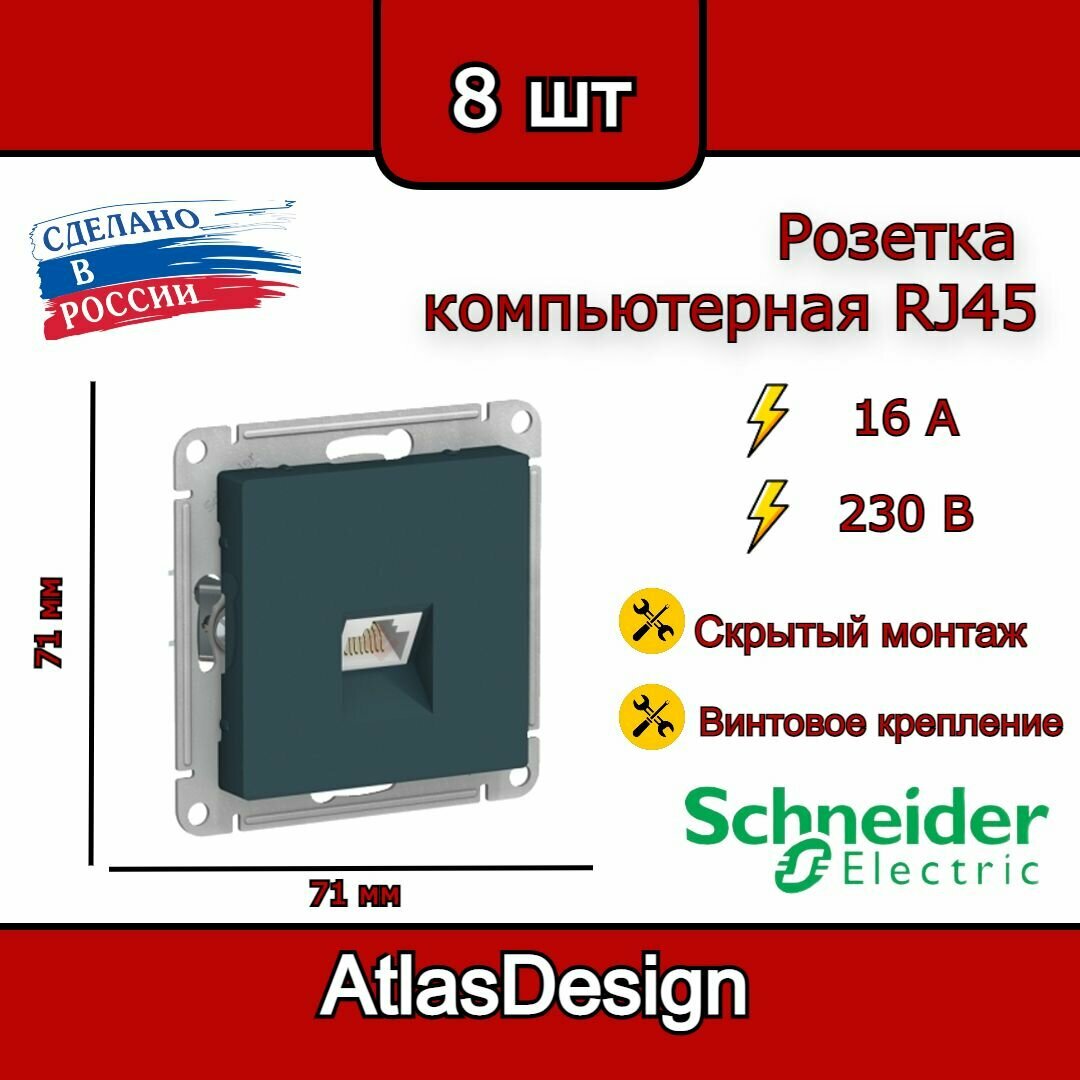 Купить Розетка компьютерная RJ45, изумруд, Schneider Electric AtlasDesign (комплект 8шт)