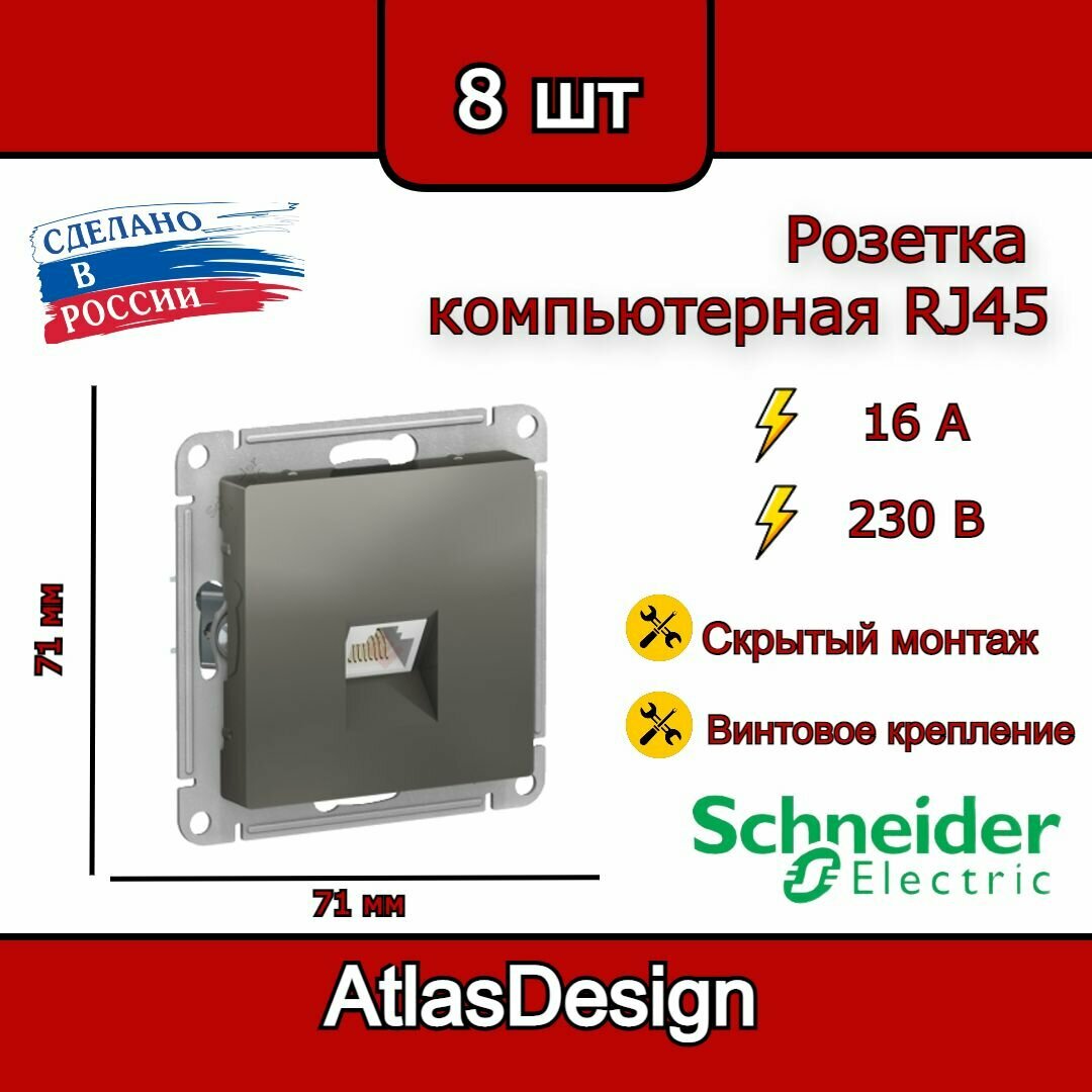 Розетка компьютерная RJ45, мокко, Schneider Electric AtlasDesign (комплект 8шт)