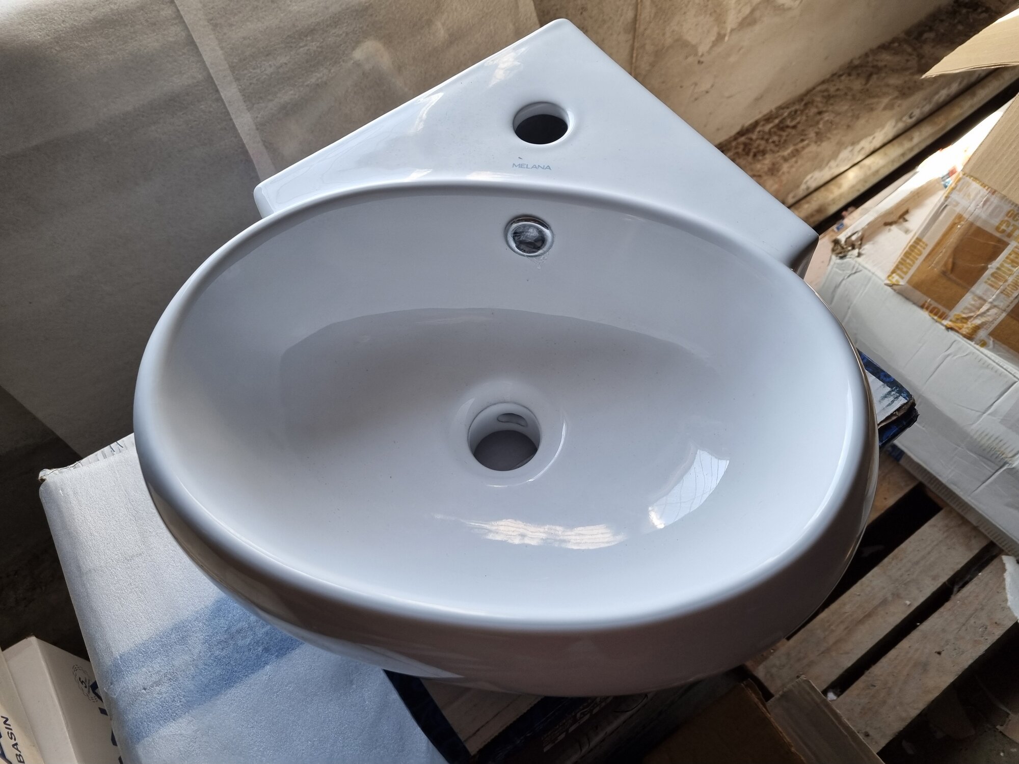 Раковина MELANA MLN-E604 белая угловая интересное:
