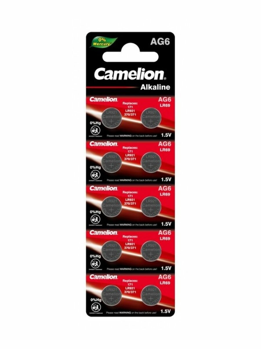 Батарейка алкалиновая Camelion Mercury Free, AG6 (371, LR921)-10BL, 1.5В, блистер, 10 шт. Camelion 3
