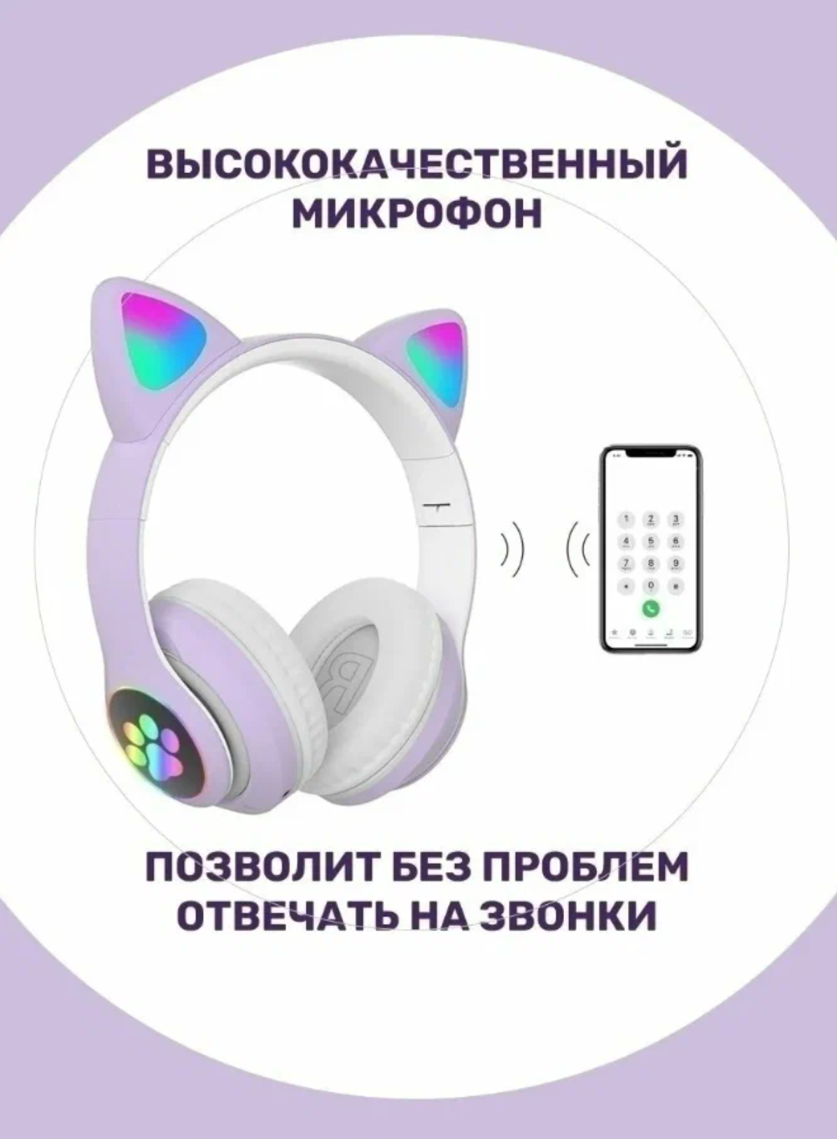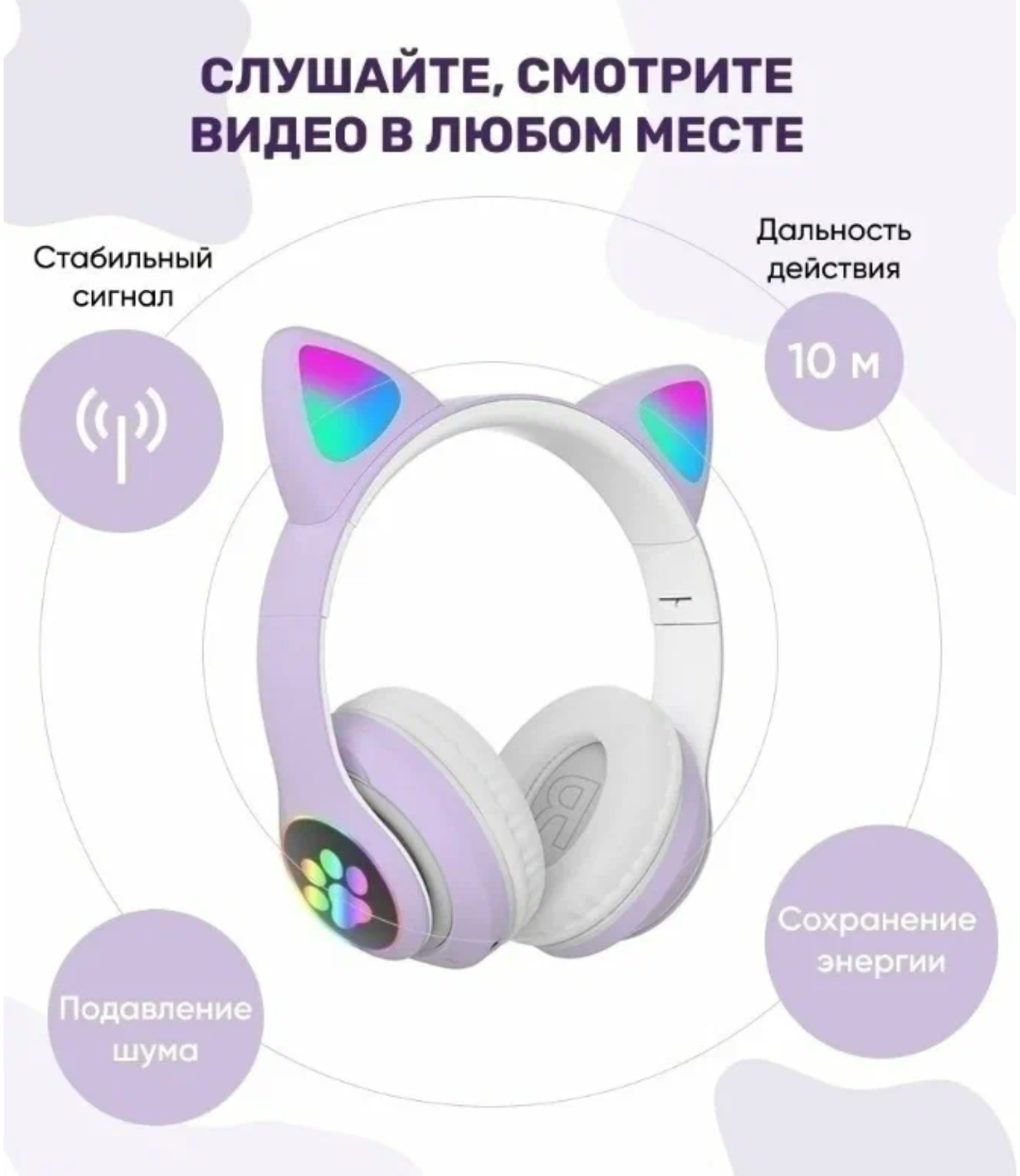 СохранитьСветящиеся детские беспроводные наушники с ушками / Беспроводные наушники детские / Наушники с ушами / Сиреневый интересное:
