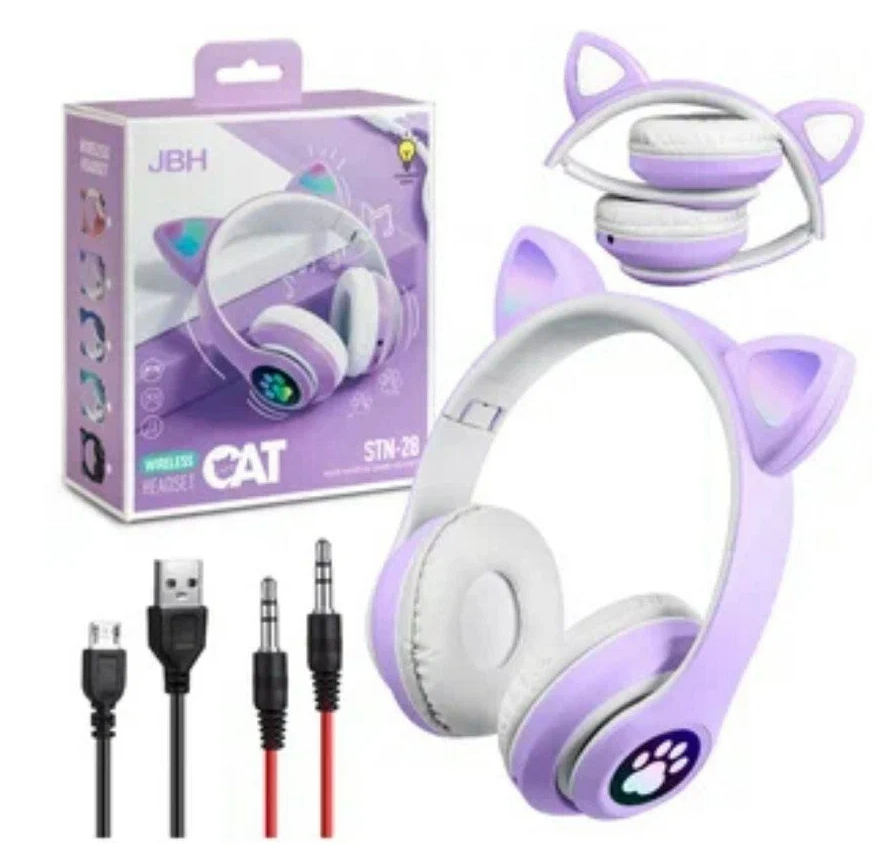 Беспроводные наушники Bluetooth CAT STN-28 со светящимися кошачьими ушками, детские (Фиолетовые)