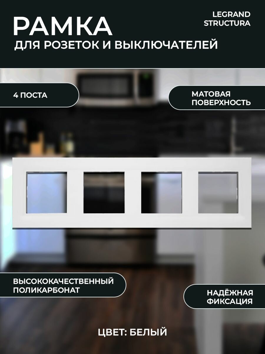 Купить Рамка для розеток и выключателей Legrand Structura 4 поста, цвет белый
