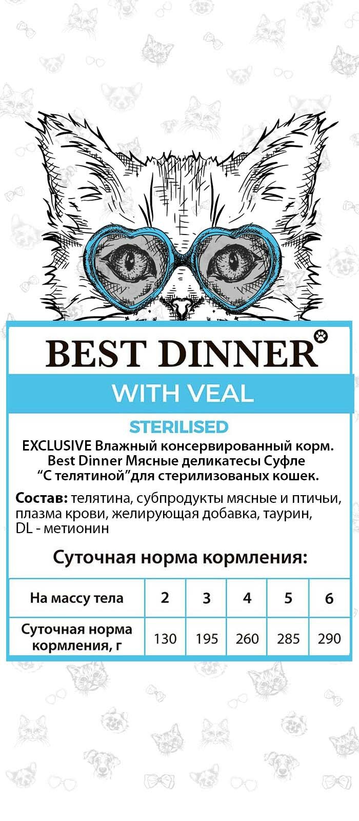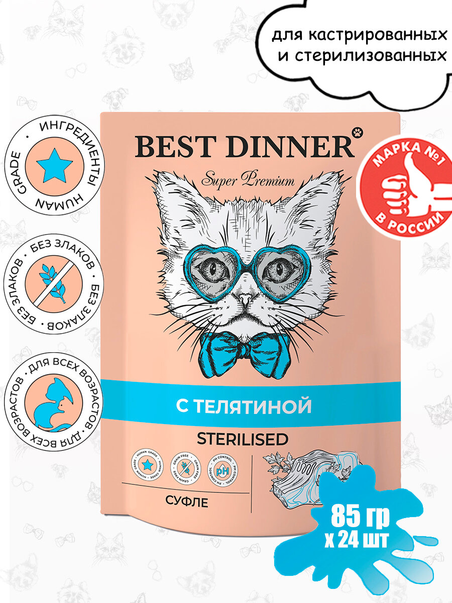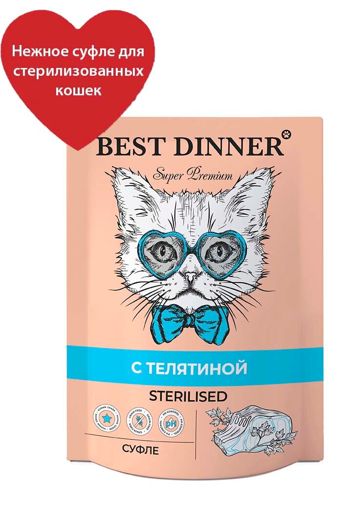 Купить Влажный корм для стерилизованных кошек (пауч) Best Dinner Sterilised Бест Диннер, суфле с телятиной, 85гр * 24 шт