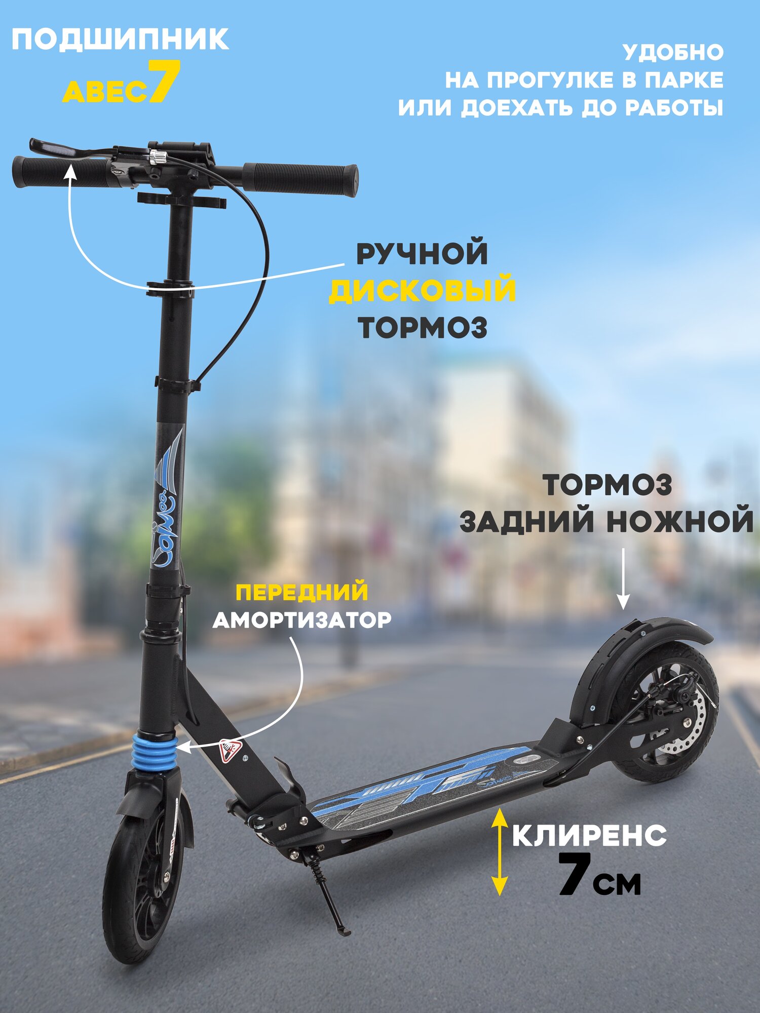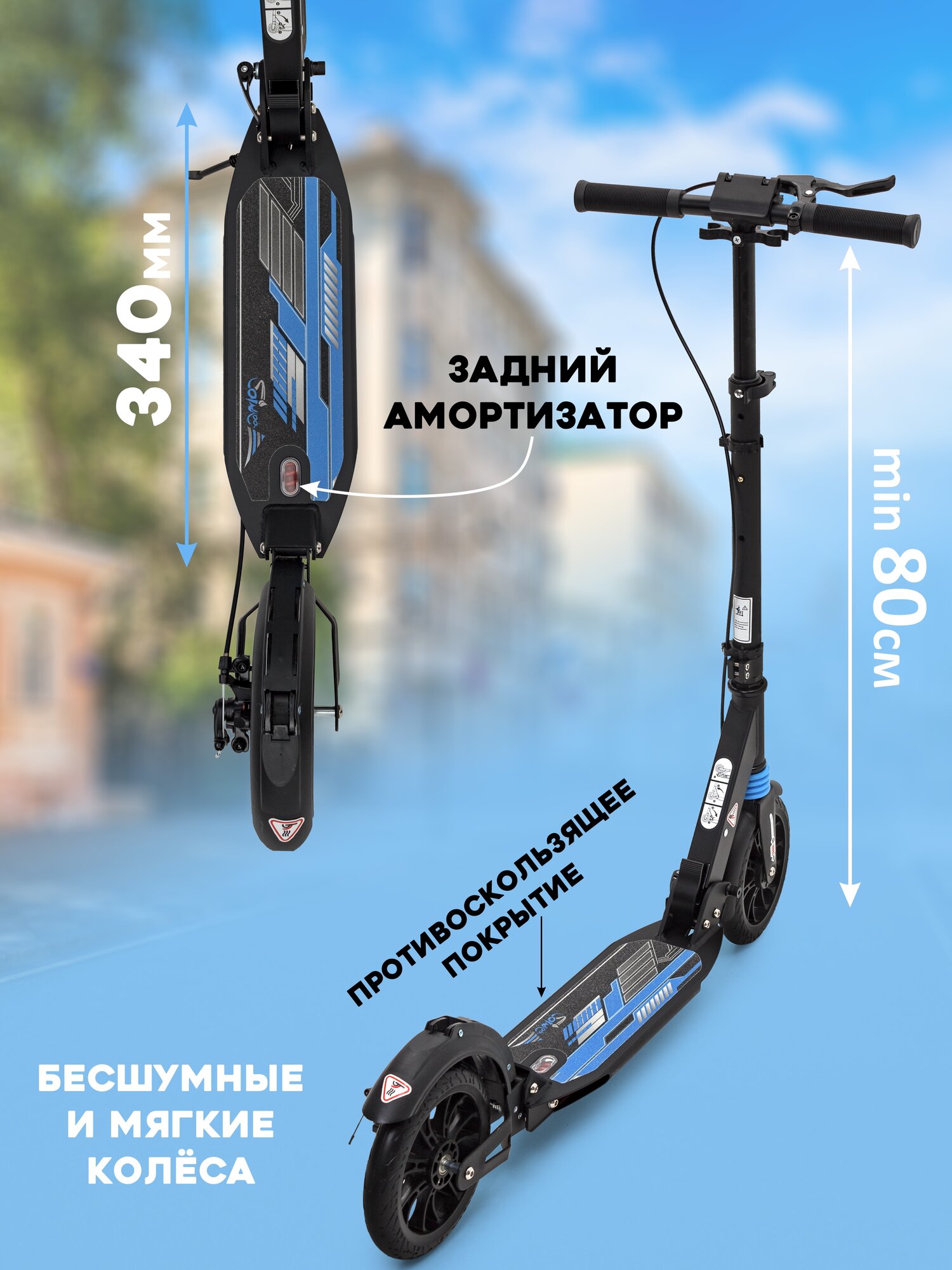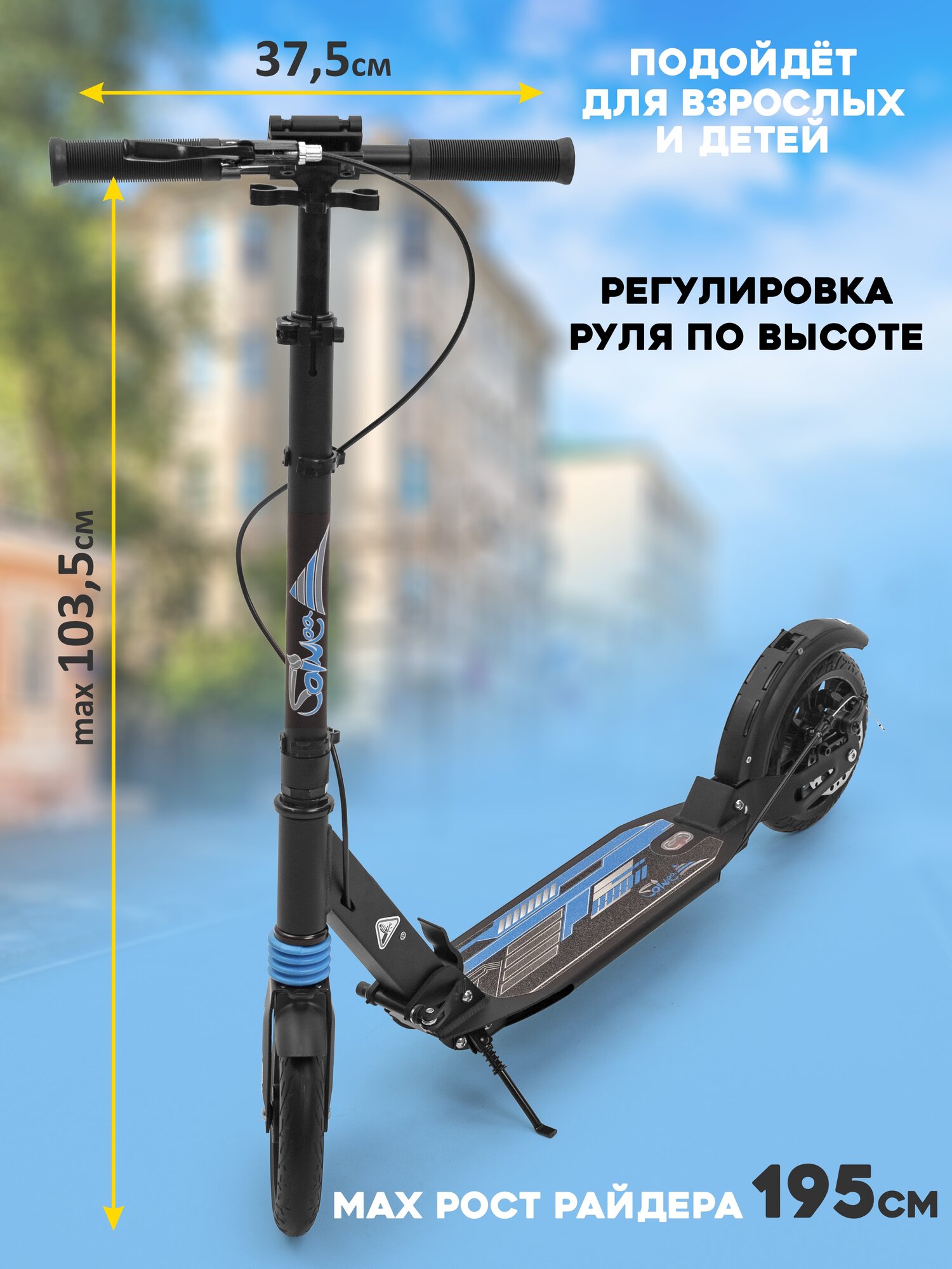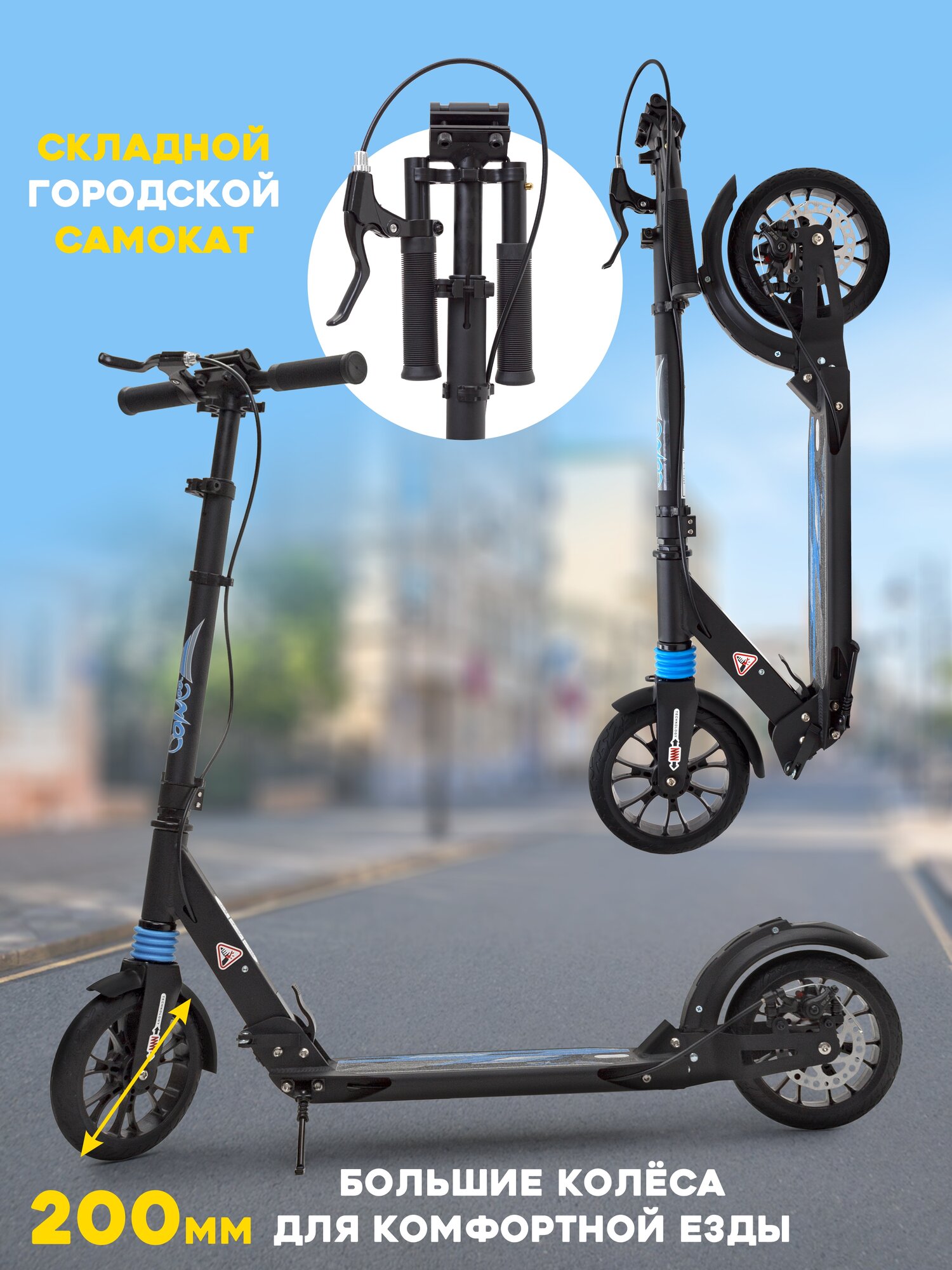 Самокат Saimaa A5D, с дисковым тормозом, складной, с амортизаторами, регулируемый руль, двухколесный городской, колеса 200 мм, черный