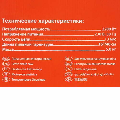 Электрическая пила DDE CSE220L, шина 40 см, 2.2 кВт, арт. 792-810