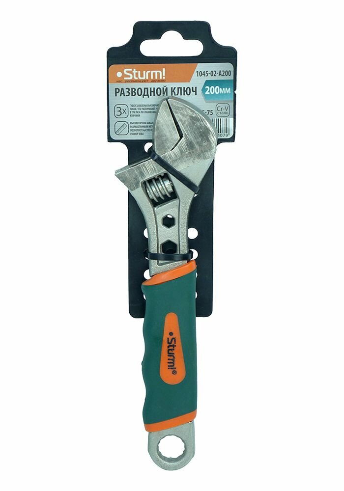 Купить Разводной ключ 200 мм, усиленный, мягкая рукоятка, подвес. Sturm! 1045-02-A200