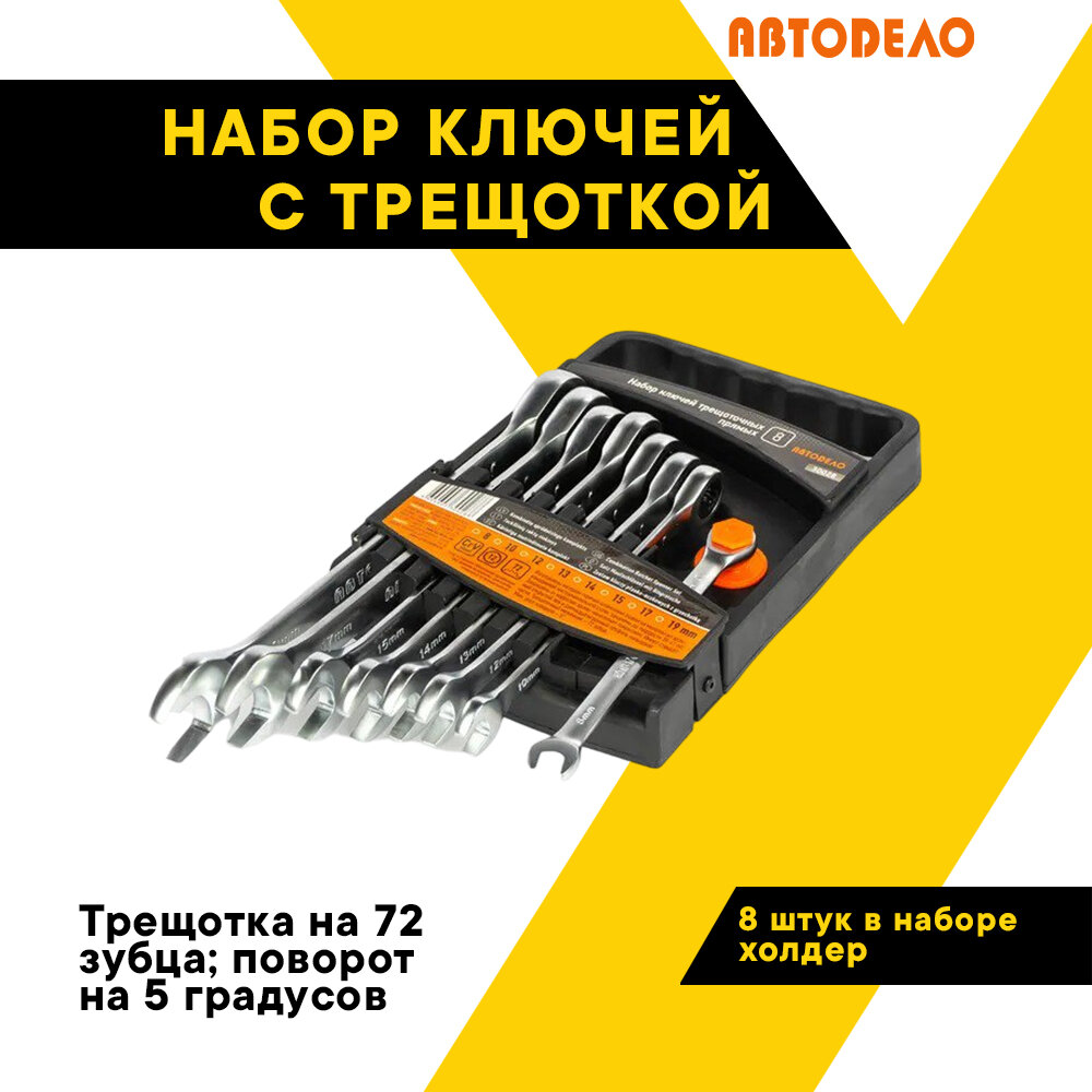 Набор гаечных ключей, комбинированных, с трещоткой, 8 шт. 8-19мм. холдер 30028 (АвтоDело) автодело