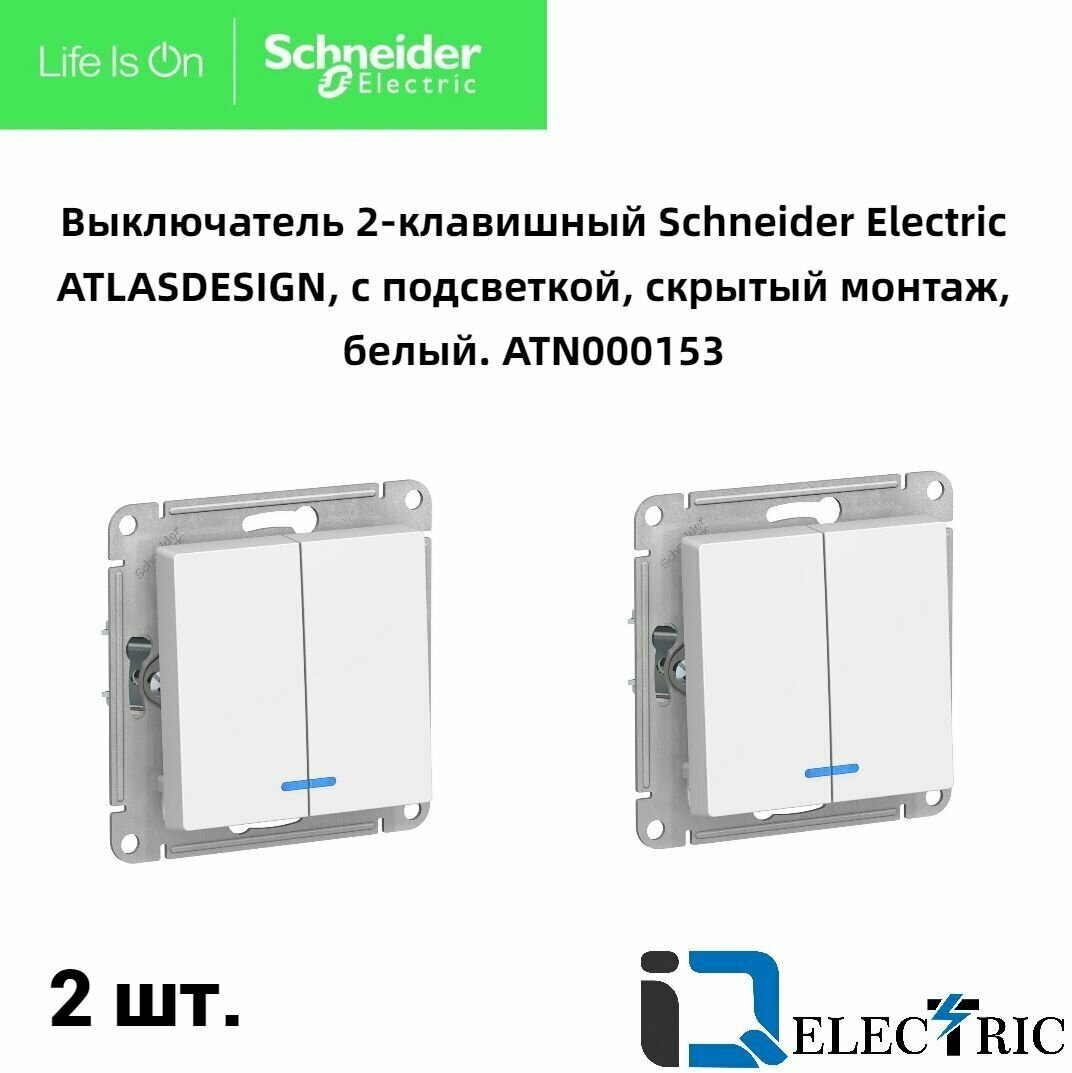 Выключатель двухклавишный с подсветкой Systeme Electric (Schneider Electric) AtlasDesign 10АХ, белый, глянцевый ATN000153 -2шт