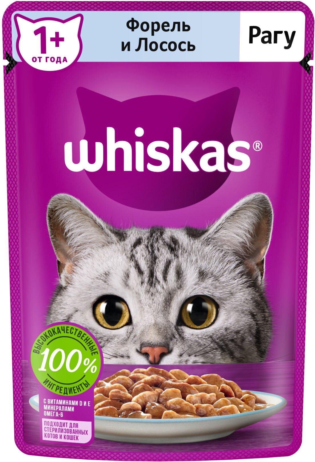 Купить Влажный корм для кошек Whiskas, рагу с форелью и лососем, 75г