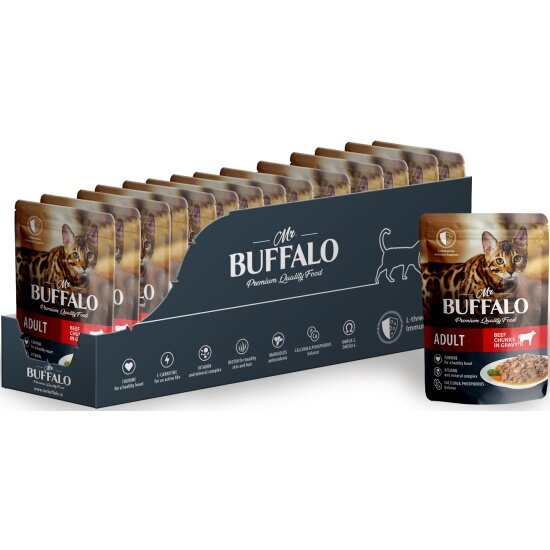 Баффало Mr.Buffalo Adult Cat 28шт по 85г говядина в соусе влажный для кошек