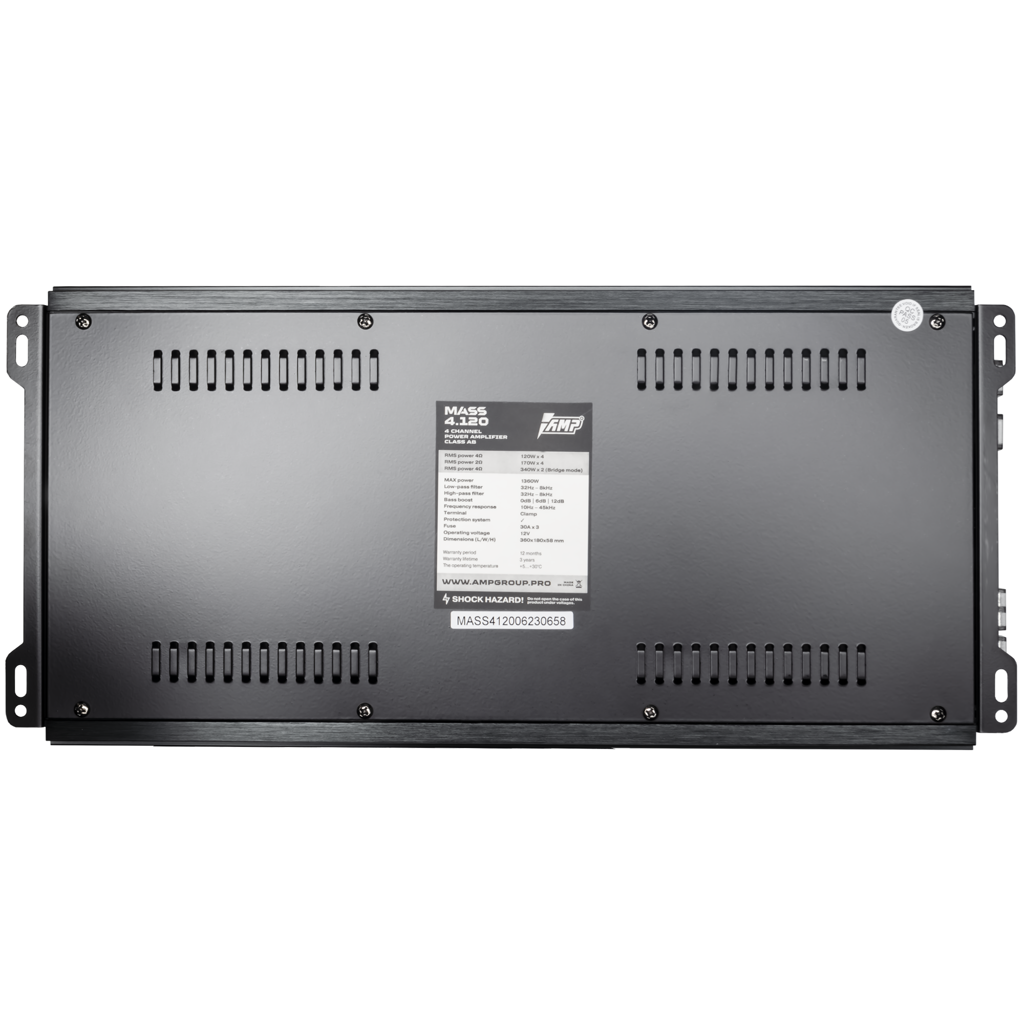 AMP MASS 4.120 усилитель автомобильный; 4-х канальный class-AB; max 1360; min 2 Ом