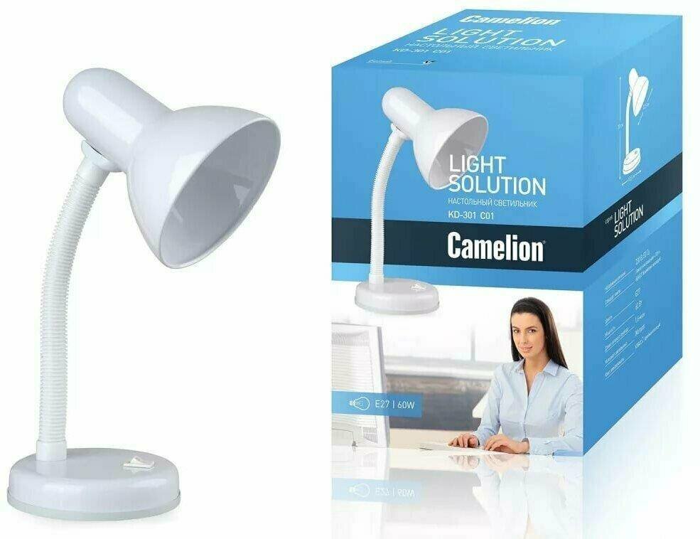 Лампа офисная Camelion Light Solution KD-301 C01, E27, 60 Вт, цвет арматуры: белый, цвет плафона/абажура: белый