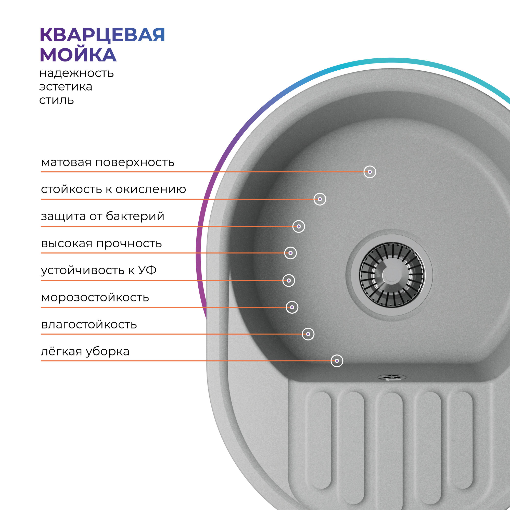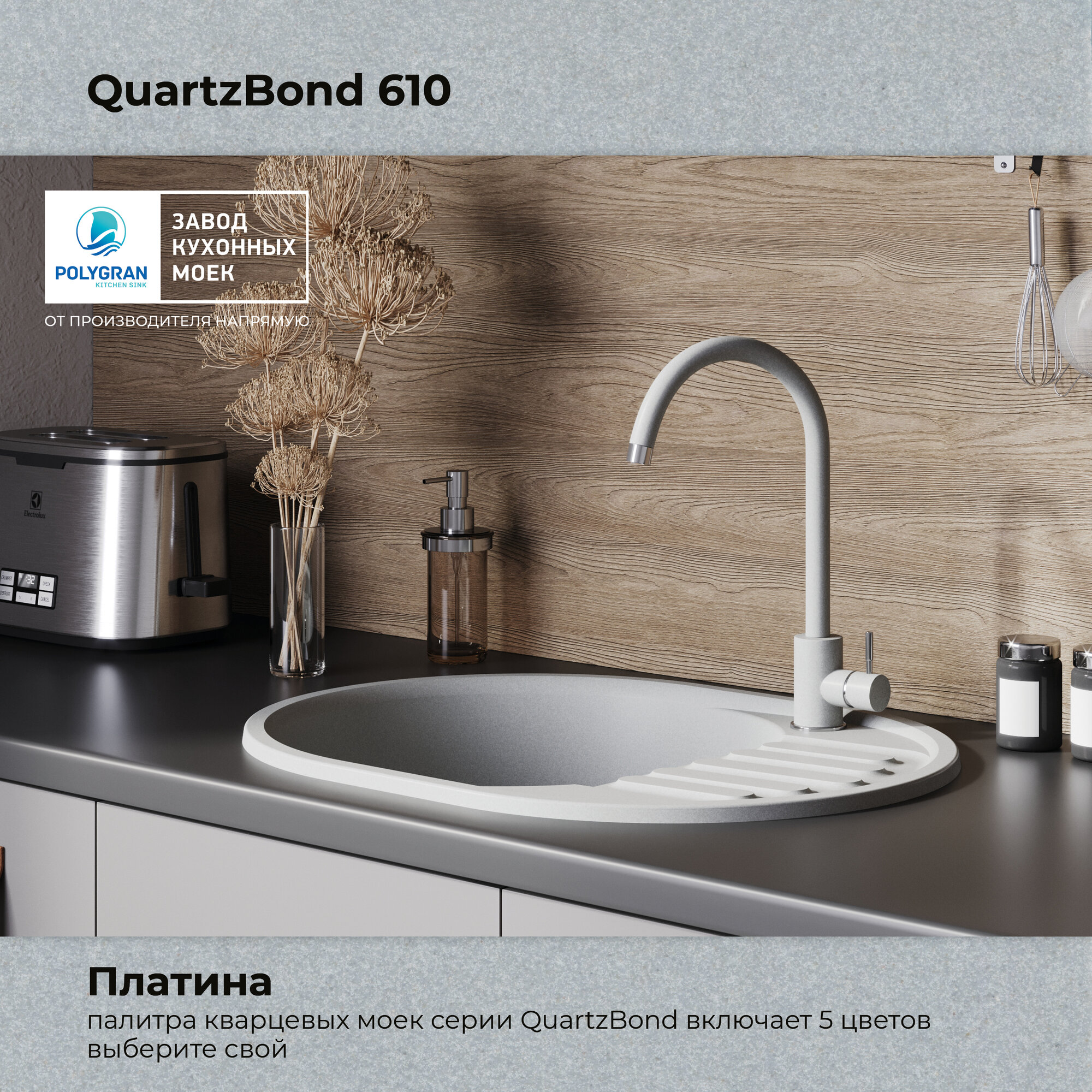 СохранитьКухонная мойка из искусственного камня QUARTZBOND BOND-610 Кварц серый (Платина) интересное:
